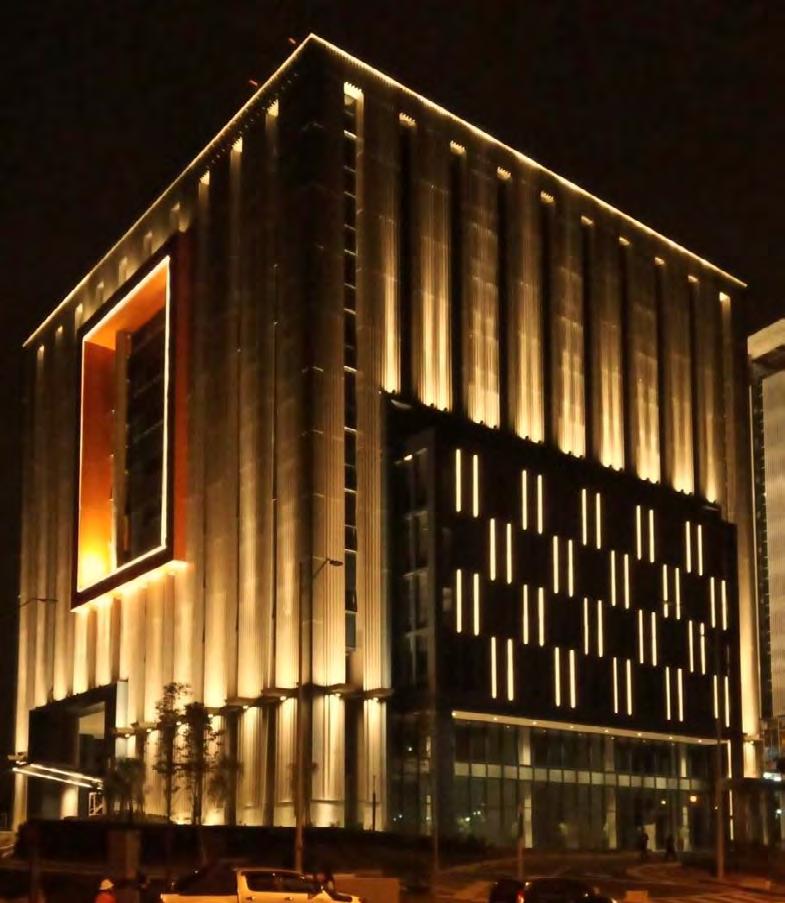 The lighting concept attempts to produce a “wow” impact by directing the eyes to the many elements and zoning regions of the entire building. Proper illumination ensures that the structure presents a consistent and pleasant image throughout the day and night.