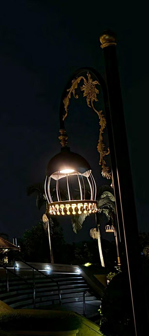 The streetlights here are inspired by floral themes and reflect the softness and intricate nature of Malay architecture.