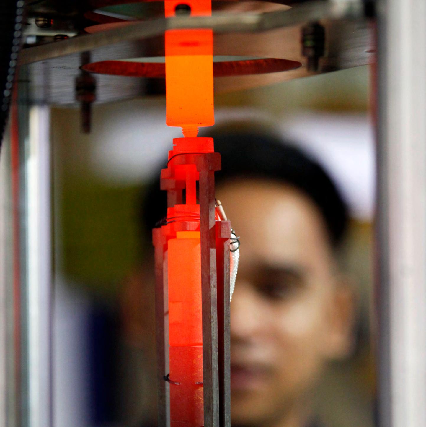 Optimizing methane production. A researcher fine-tuning the gas flow for the reactor.