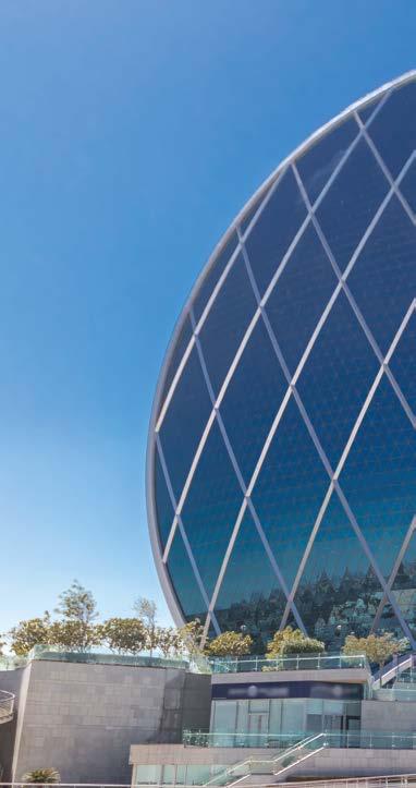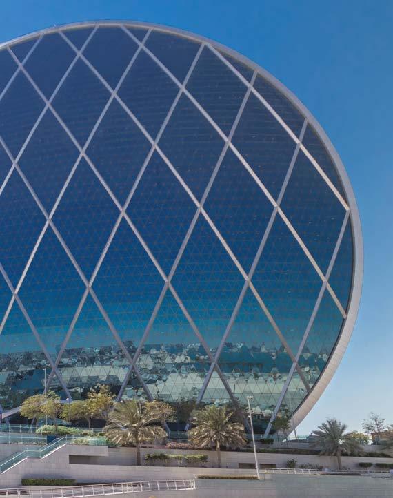 The Al Dar Headquarters, designed by MZ Architects, is a distinctive and innovative semispherical design comprising two circular convex shaped facades linked by a band of glazing. This iconic fully glazed structure is completely circular in elevation and curved in all other directions.