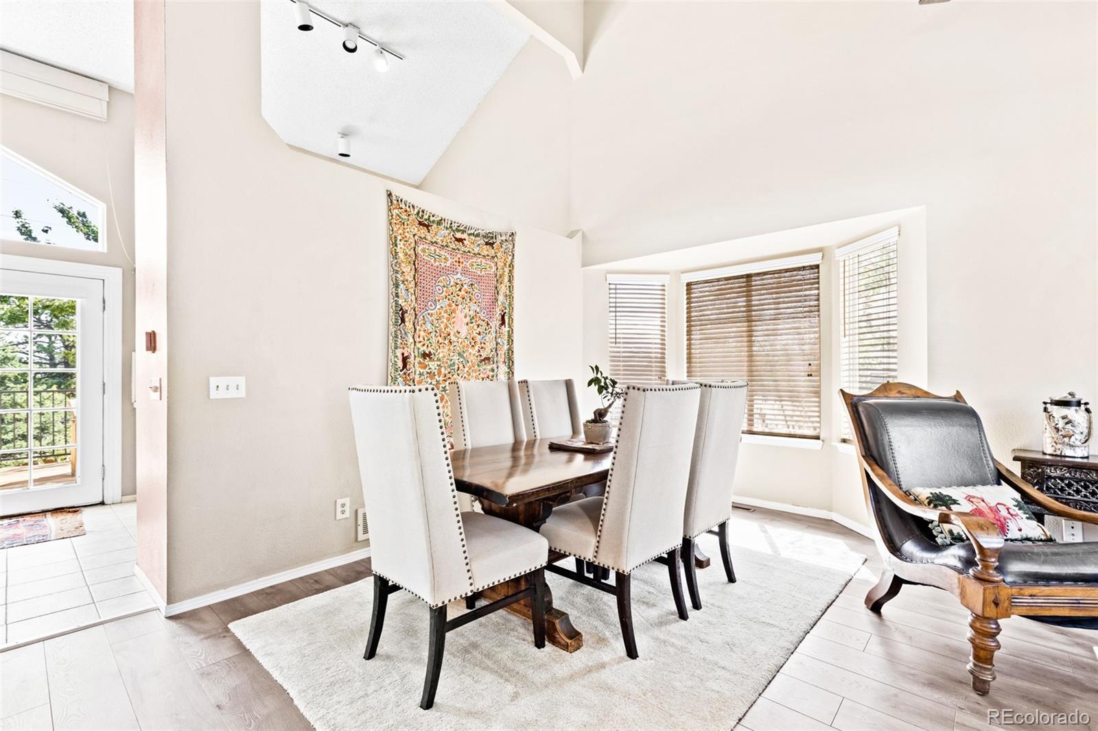 A radiant escape awaits in this tri-level Castle Rock residence. Situated on a one-of-a-kind lot, a serene setting unfolds w/ mature trees and a picturesque landscaping. Enter into an open and airy layout flanked by lofty vaulted ceilings and abundant windows. A spacious front room flows easily into a dining area for seamless entertaining. Generous warm wood cabinetry in an eat-in kitchen offers plentiful storage. A glass door opens to reveal an expansive deck overlooking a private backyard backing to a canyon. Imagine crisp evenings spent relaxing and dining al fresco in this coveted outdoor space. A brick fireplace grounds a living area crafting a cozy atmosphere. One of three sizable bedrooms, a primary awaits w/ an en-suite bath. Versatile secondary bedrooms afford space flexible to new residents' needs. Enjoy an ideal location in a quaint neighborhood w/ proximity to schools, shopping, dining, outdoor recreation and more. ***SELLER CONCESSION of $5,000 offered at closing for buyer upgrades.