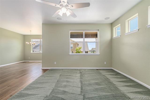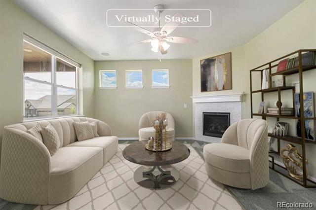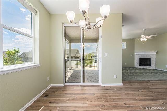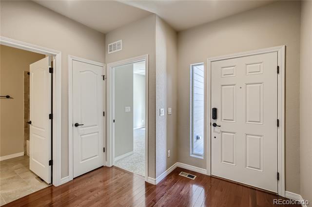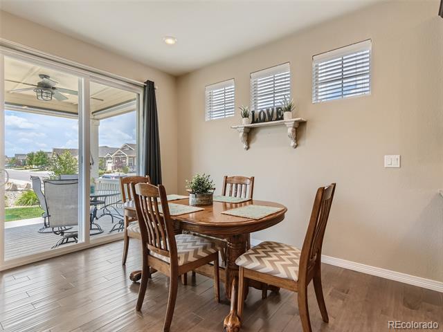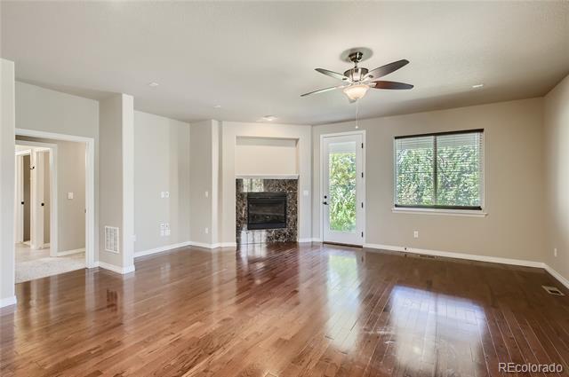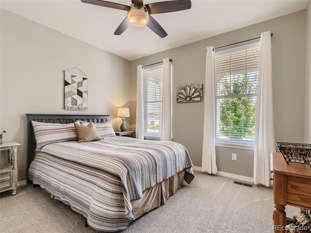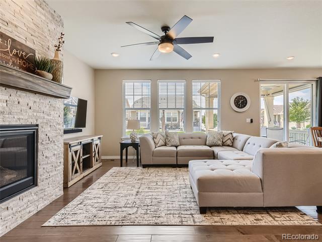 This 2-Bed, 2-Bath home with a flex space is waiting for you! Upon entering this light-filled home, youll notice the gleaming hardwood floors and see the secondary bedroom and a full bathroom. The flex space can be used as a private office if you work from home, a formal dining room or a TV/reading room. The spacious Great Room is perfect for entertaining and enables you to prepare food while visiting with your guests. The kitchen has 42" high cabinets, granite countertops, stainless steel appliances, double wall ovens, a gas cooktop, an island and convenient pull-outs cabinets. The gas fireplace provides a cozy spot for drinking hot chocolate on a snowy Colorado evening. The Primary Bedroom features a spacious ensuite with a walk-in shower, double sinks and 2 walk-in closets. Enjoy your morning coffee or tea on the covered back patio. Store your golf cart or extra toys in the oversized garage. The full, unfinished basement is ready for your finishing touches and has egress windows if you want to add a bedroom. THE SOLAR PANELS WERE PURCHASED AND WILL BE PAID OFF BY SELLER AT CLOSING. All appliances remain. Youll love the active adult lifestyle of resort-like Heritage Todd Creek with all of the activities and amenities including the 18-hole, 700-acres Arthur Hills championship golf course, pickleball and tennis courts, bike maintenance area, business center, fitness center, indoor and outdoor swimming pools, hot tub, library and recreation rooms. Enjoy fitness classes, water aerobics or games with friends. Relax and enjoy breakfast, lunch or dinner in the restaurant located in the 33,000 sq. ft. resort-style clubhouse. Enjoy the resort lifestyle without leaving home; theres always something to do at Heritage Todd Creek! Close to highways, dining, shopping, and entertainment with an easy commute to DIA, downtown Denver, Golden, Boulder and beyond. WELCOME HOME!