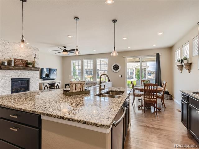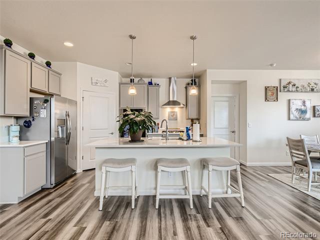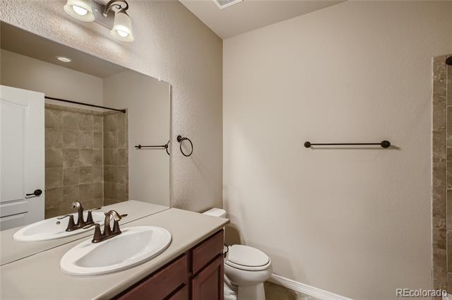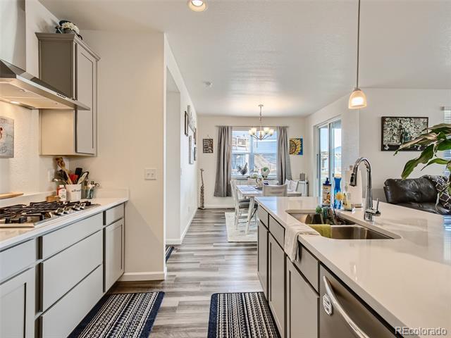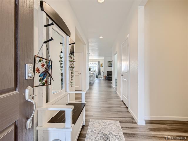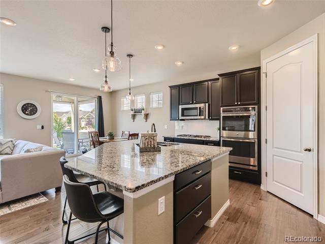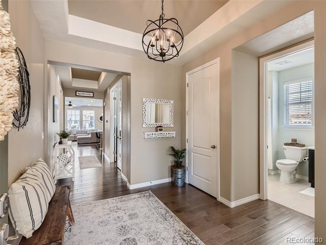 PRICE IMPROVED for this fantastic opportunity in the highly desirable Waterside at Todd Creek neighborhood! This unique ranchstyle floorplan offers all the important things on the main level including the primary bdrm with gorgeous en-suite bath and huge walk-in closet which is separated from the other bedroom and study for privacy. The stunning gourmet kitchen is truly at the heart of this home with a gas cooktop, built-in oven/microwave, custom look cabinetry with integrated garbage/recycling drawer, professional style vent hood, a fantastic pantry, and an amazing island topped by glittering quartz countertops. It's simply stunning! The spacious laundry sits at the foot of the stairs which lead to the second floor loft area and third bedroom and bathroom. The extra space adds so much flexibility! Guests? Sewing/crafts? Poker nights? WFH or home schooling needing extra privacy? Boomerang or sandwich situation? This space adds that extra living area which makes this house a complete winner! Loads of extras/upgrades including a smart security system, easy care luxury vinyl plank flooring, tankless water heater, window blinds, full yard landscaping/sprinklers and fencing, a near new hot tub and a south driveway. The location is commuter friendly to Denver, Boulder, DIA or E-470. With so many nearby amenities including entertainment, shopping and dining, you'll appreciate having everything you want so close. Hurry before this house gets snapped up! Metro District fees are $200/quarter. Buyer to verify all.