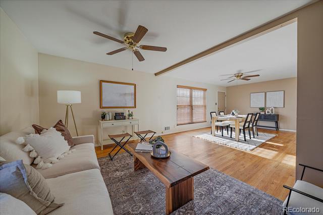 This home has a brand New Roof, plus a New HVAC system, and New Water Heater. The Fireplace has a New Gas Log Set, with a remote control, perfect for those cold winter nights snuggling up with the family for movie night. There is also a New Garage Door Opener, with 2 remotes, for the oversized 1 car garage. This home also features newer vinyl double pane windows. All the high dollar items are done. There are the original hardwood floors on the entire upper level, excluding the bathrooms, also the upper level stairway, living and dining room areas, just waiting to be exposed if you desire. This home was built in 1964, and has great bones, just waiting for your finishing touches to make it your own. This home is move-in ready, with all the appliances included. You can pick and choose your projects while living there, with no pressure. The basement has a wet bar, perfect for a Man Cave. There is room for a pool table, or air hockey, foosball, or your game of choice. Maintenance free exterior, with the brick and siding. There is a gas line on the back exterior patio, perfect for summer Bar-Be-Cues. This is right off the Huge 12 x 23 sun room. Or you can relax on the front covered porch. This 8,174 sq. ft. lot features mature landscaping and a sprinkler system, both front and back. The back yard is fully fenced, for your pets. There is also room for a garden area if desired. This is a must see home, it is close to I-25, restaurants, grocery stores, shopping, and public transportation.