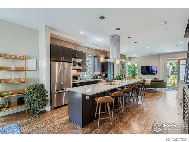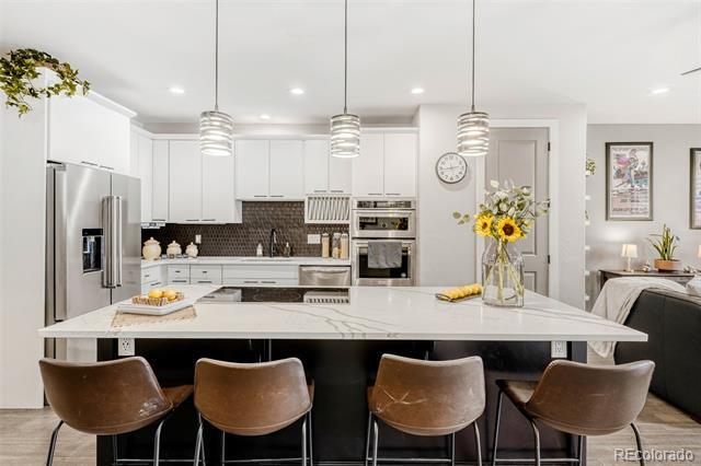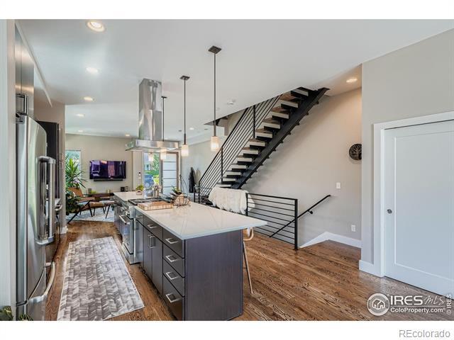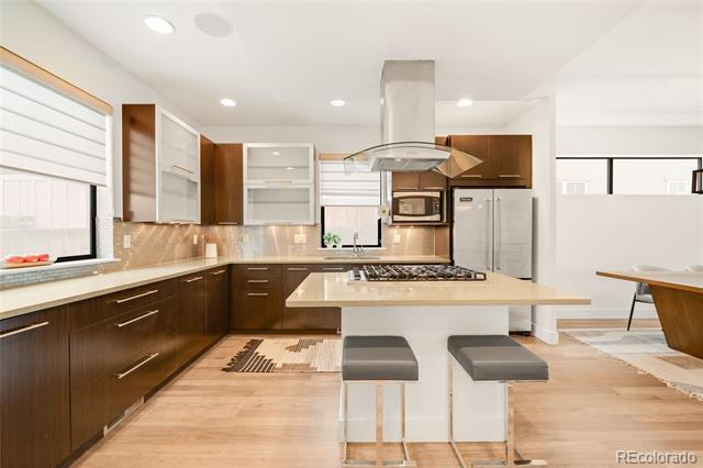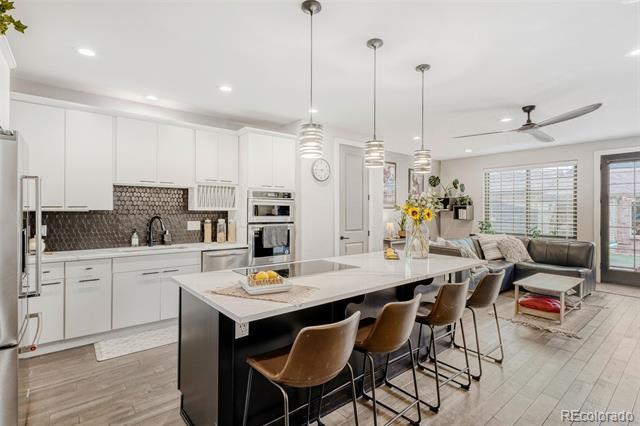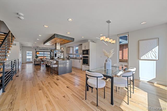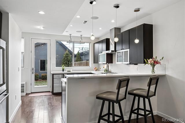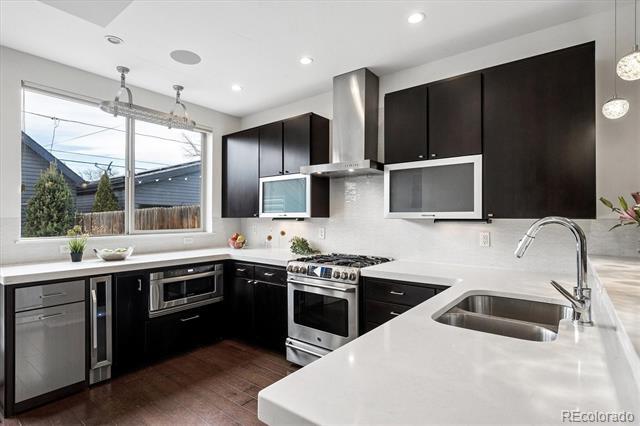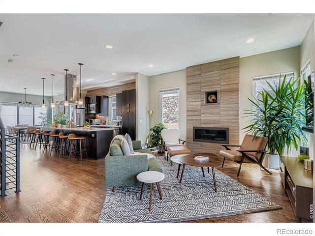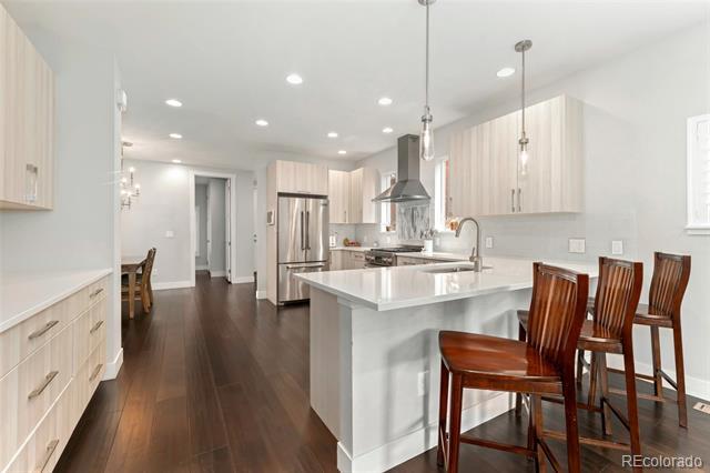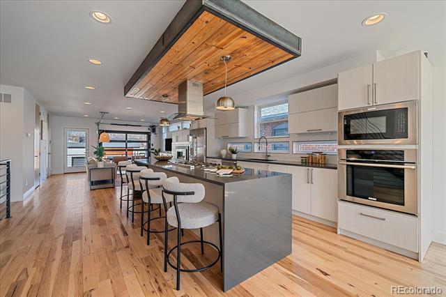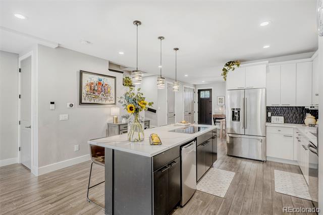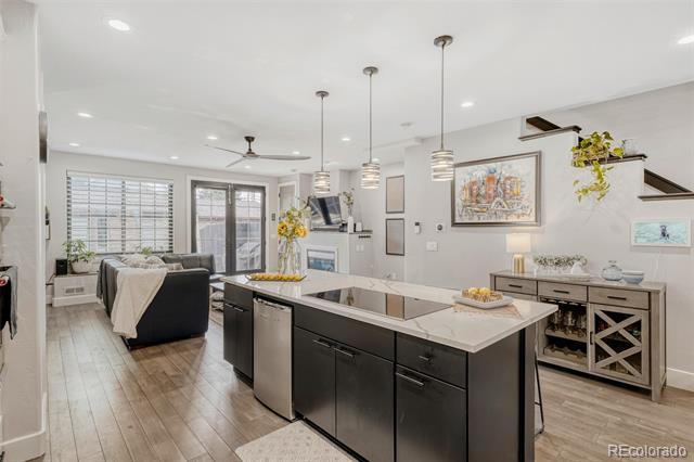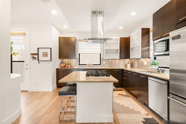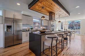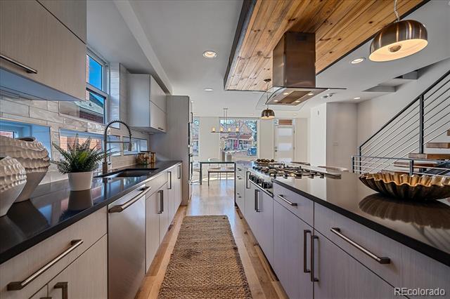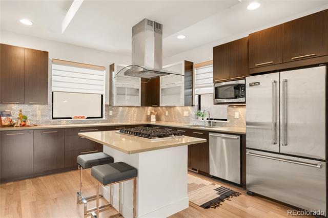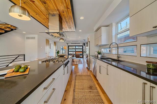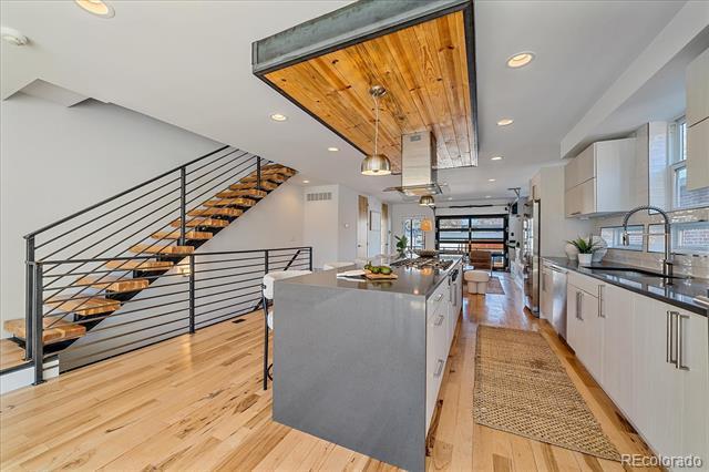 Experience elevated urban living in Denver’s coveted Sloan’s Lake neighborhood. This contemporary residence blends clean lines with timeless comfort, featuring an open layout bathed in natural light. The gourmet kitchen is a chef’s dream, outfitted with stainless steel Electrolux appliances, a Bertazzoni six-burner stove, quartz countertops, and an expansive island—perfect for casual meals or hosting elegant dinner parties. Seamlessly transition into the inviting living area, where a patio garage door opens to the backyard—ideal for dining al fresco or soaking up Denver’s abundant sunshine. Retreat to the spacious primary suite, complete with a luxurious en-suite bath and generous closet space. Three additional bedrooms (including two tucked away in the basement for added privacy) offer versatility for guests, a home office, or a personal gym. The basement also boasts a secondary living space, perfect for movie nights or relaxation. From the private rooftop deck, take in breathtaking city views and enjoy a front-row seat to the Fourth of July fireworks. Just a few blocks from the iconic Sloan’s Lake Park, this prime location puts you steps from jogging trails, paddleboarding, and stunning mountain vistas. A short stroll leads to a vibrant dining and entertainment scene, featuring favorites like Sloan’s Lake Tap & Burger, Joyride Brewing Company, Rupert’s at the Edge, Edgewater Public Market, Providence Tavern, and Alamo Drafthouse Cinema. With easy access to downtown Denver and major highways, both work and weekend adventures are effortless. Thoughtfully designed and perfectly situated, this home captures the best of city living—offered exclusively by Kelly Tierney & Christie Lysaught of Kentwood Real Estate.