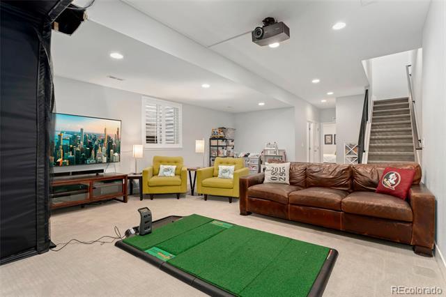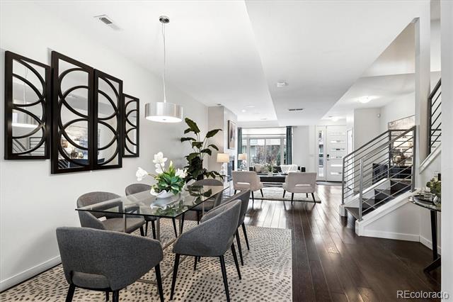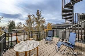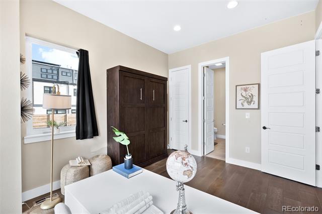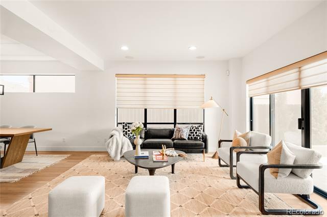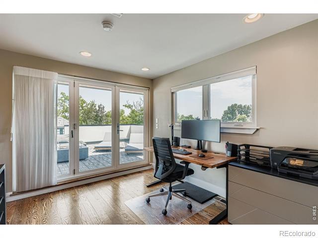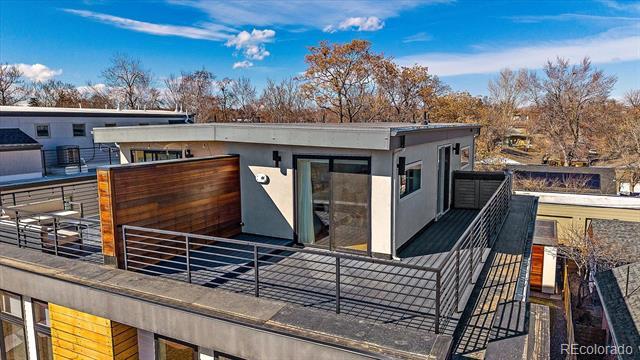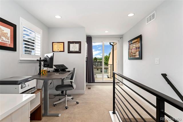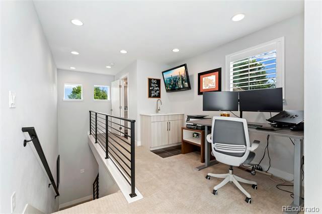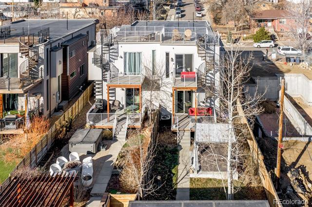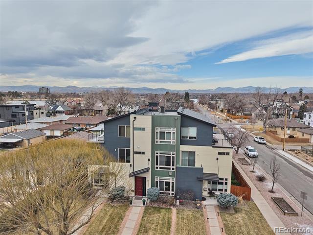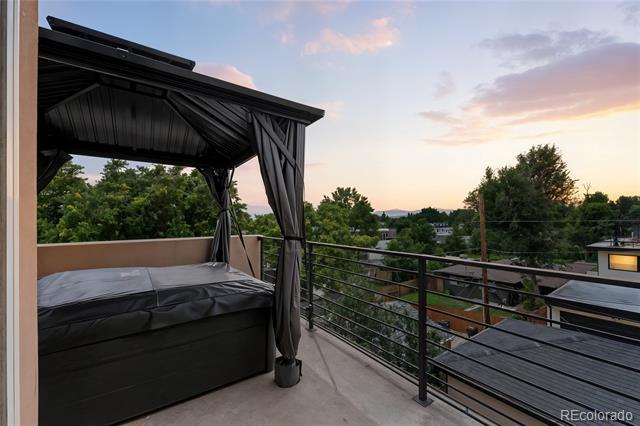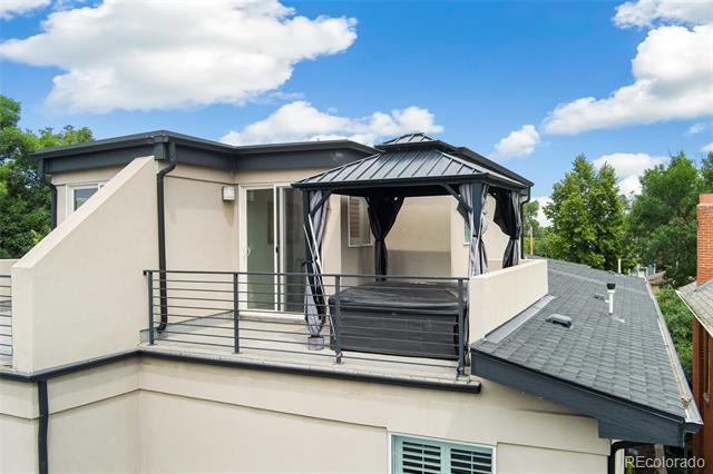 Experience the best of city living in this stunning luxury duplex style townhome, where modern design, thoughtful layout, and high-end finishes combine to create a truly exceptional home. Immaculately cared for and beautifully appointed, this residence offers the perfect balance of comfort, style, and functionality across four spacious levels. Step inside to discover an inviting open-concept main floor featuring sleek JennAir stainless steel appliances, custom tilework, plantation shutters, and a large island that anchors the chef’s kitchen. The living and dining areas flow seamlessly together, enhanced by abundant natural light and sliding glass doors that open to a private urban patio—an ideal space for entertaining or relaxing outdoors. The patio leads to the detached 2-car garage, accessible via alley. A dedicated home office on the main level adds versatility, perfect for remote work or study. On the second floor, the tranquil primary suite includes a spa-like en-suite bathroom and walk-in closet, while two additional bedrooms share a well-appointed Jack-and-Jill bathroom. The third level offers an additional flex space or office with direct access to the rooftop deck, where panoramic city and mountain views—and a private hot tub—create a one-of-a-kind retreat for quiet mornings or vibrant evenings. The fully finished basement boasts soaring 10' ceilings, a generous bonus/family room, an additional bedroom, and a full bathroom, providing comfortable accommodations for guests or extended family. Ideally located just minutes from Highlands Square, Sloan’s Lake, Broncos Stadium, Jefferson Park, Downtown Denver, and easy commuter access via I-25 and Speer Blvd, this home offers convenience without compromise. Whether you’re hosting, relaxing, or exploring all the city has to offer, this luxurious home is the perfect place to call your own!
