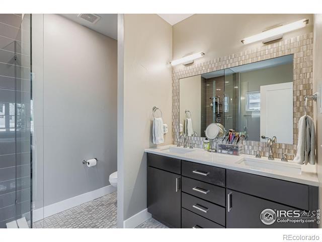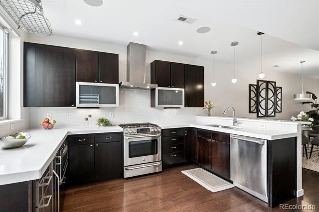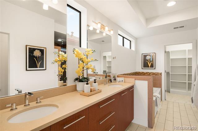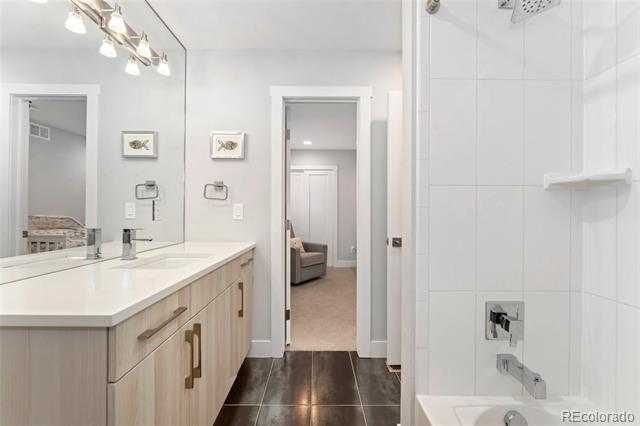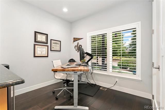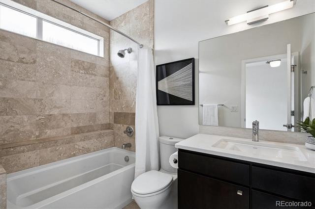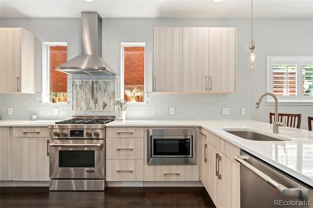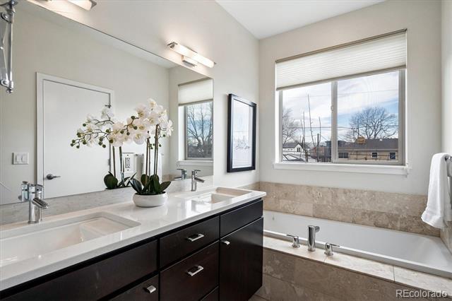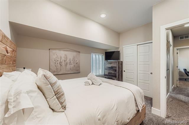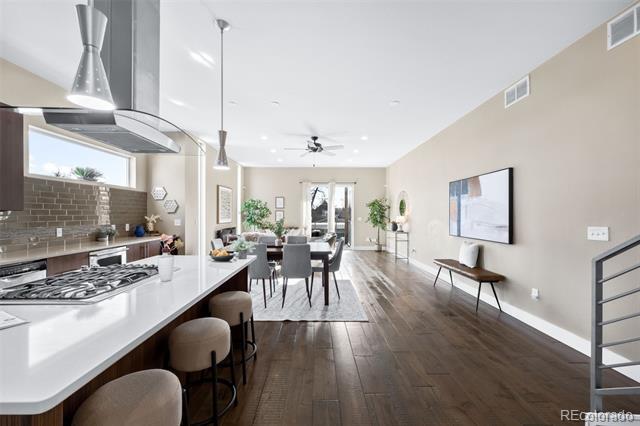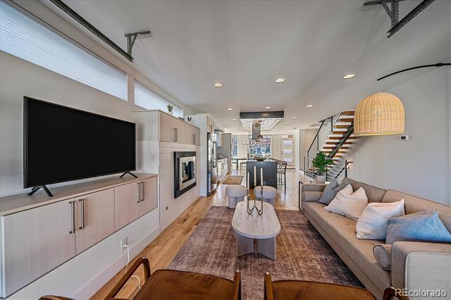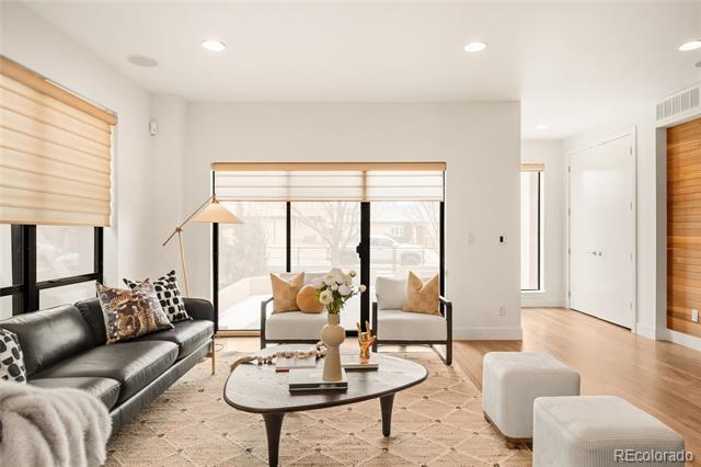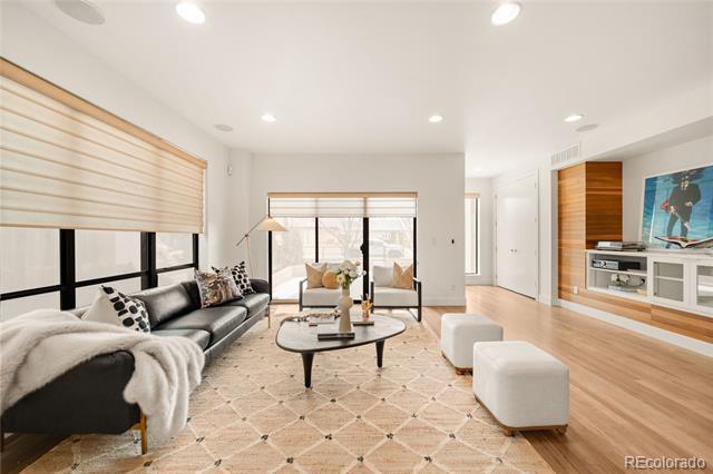 Experience the best of city living in this stunning luxury duplex style townhome, where modern design, thoughtful layout, and high-end finishes combine to create a truly exceptional home. Immaculately cared for and beautifully appointed, this residence offers the perfect balance of comfort, style, and functionality across four spacious levels. Step inside to discover an inviting open-concept main floor featuring sleek JennAir stainless steel appliances, custom tilework, plantation shutters, and a large island that anchors the chef’s kitchen. The living and dining areas flow seamlessly together, enhanced by abundant natural light and sliding glass doors that open to a private urban patio—an ideal space for entertaining or relaxing outdoors. The patio leads to the detached 2-car garage, accessible via alley. A dedicated home office on the main level adds versatility, perfect for remote work or study. On the second floor, the tranquil primary suite includes a spa-like en-suite bathroom and walk-in closet, while two additional bedrooms share a well-appointed Jack-and-Jill bathroom. The third level offers an additional flex space or office with direct access to the rooftop deck, where panoramic city and mountain views—and a private hot tub—create a one-of-a-kind retreat for quiet mornings or vibrant evenings. The fully finished basement boasts soaring 10' ceilings, a generous bonus/family room, an additional bedroom, and a full bathroom, providing comfortable accommodations for guests or extended family. Ideally located just minutes from Highlands Square, Sloan’s Lake, Broncos Stadium, Jefferson Park, Downtown Denver, and easy commuter access via I-25 and Speer Blvd, this home offers convenience without compromise. Whether you’re hosting, relaxing, or exploring all the city has to offer, this luxurious home is the perfect place to call your own!