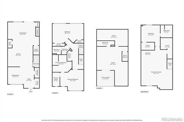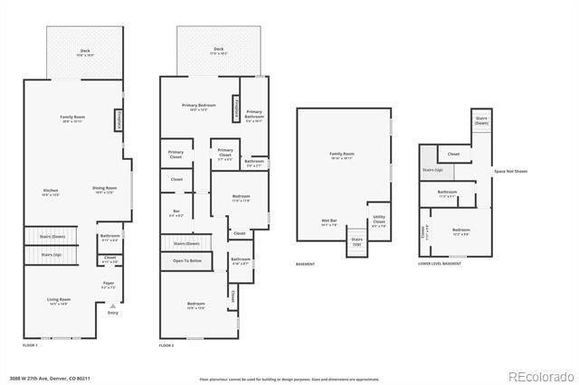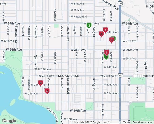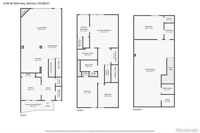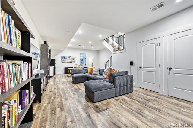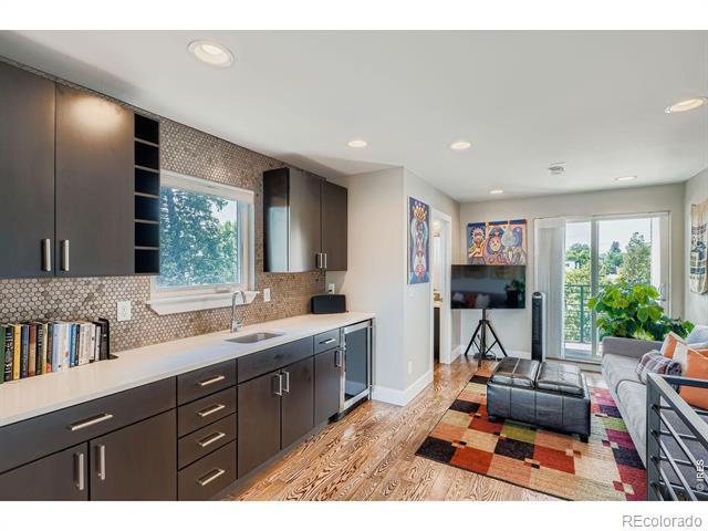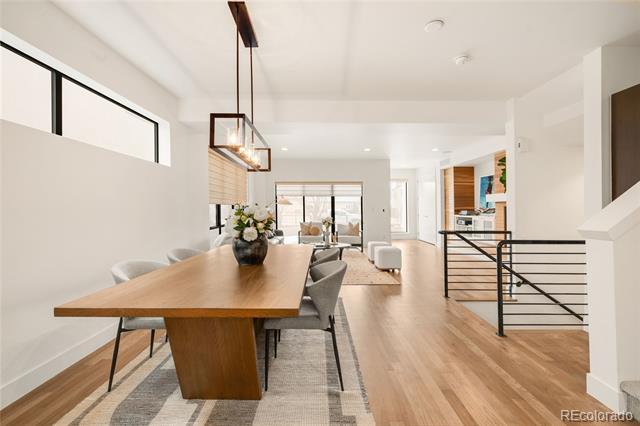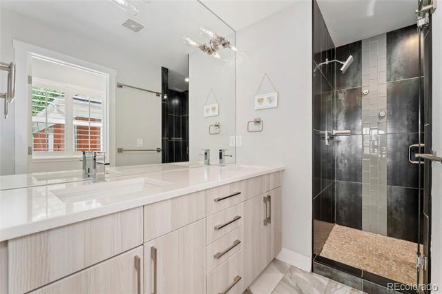 architectural lines that define the space. Upstairs, the floating staircase leads to the 3 large bedrooms including the gorgeous primary bed. The luxurious owner's suite includes a spa-worthy 5-piece bath. It includes a soaking tub, walk-in shower, private commode, double vanity, and a walk-in closet. A conveniently located second-floor laundry and stunning mountain views from the secondary bedroom elevate everyday living. The third floor is made for entertaining - complete with a wet bar, flex guest/media space, and access to the incredible rooftop deck where you'll enjoy panoramic city and Rocky Mountain views plus southern sunlight year-round. Downstairs, the finished basement offers yet another large great room with a second wet bar, a fourth bedroom, and a full bath - perfect for guests, home office, or extended living.Located in one of Denver's most walkable neighborhoods, you're just minutes from Sloan's Lake, Highland Square, and Jefferson Park. Enjoy dining, shopping, and recreation all within 10 minutes from your front door. A 2-car detached garage completes this rare offering. All data deemed reliable but not guaranteed