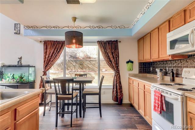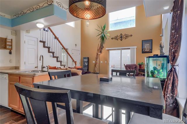This 2 bedroom, 2 and a half bathroom home is in the heart of one of Denver's fastest growing neighborhoods, Green Valley Ranch. As you step inside, you'll be immediately drawn to the open floor plan that's perfect for modern living and entertaining guests. High ceilings, built-ins, and an eat-in kitchen make this move-in ready home perfect for first time buyers or those looking to downsize. The living room boasts plenty of natural light with large windows and high ceilings and flows seamlessly into the kitchen, which features plenty of counter space and ample cabinets for storage. Whether you're cooking up a storm or hosting a dinner party, this kitchen is sure to impress. Laundry is just off the 2 car garage and the stackable washer and dryer stay with the home. Upstairs, the bedrooms are spacious and comfortable, with ample closet space and large windows that allow for plenty of natural light. The primary suite features a full bathroom with double sinks and walk-in closet. This home has all the comforts you need for work and play. The fully fenced back yard and central AC make this one a can't miss! The home is located close to public transportation, including 2 light rail stations. Shopping, restaurants, and easy access to I-70 and E470 are why this area is so popular!