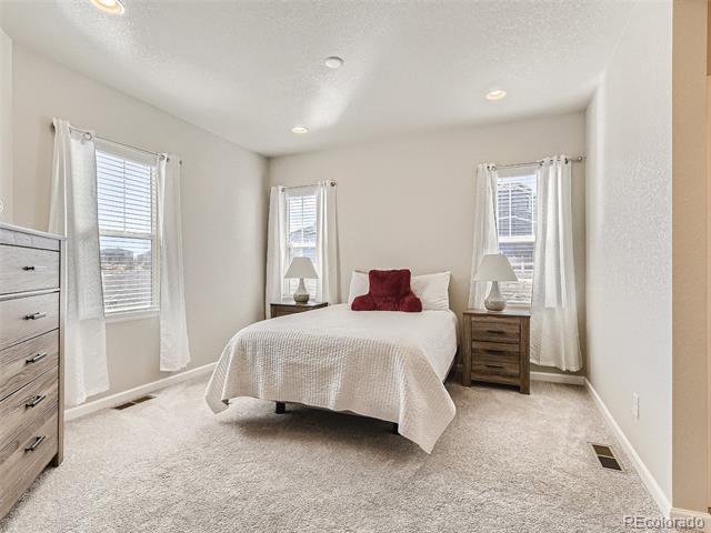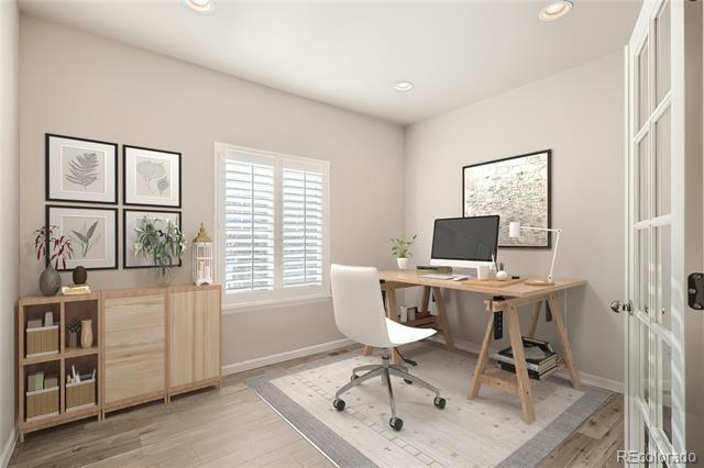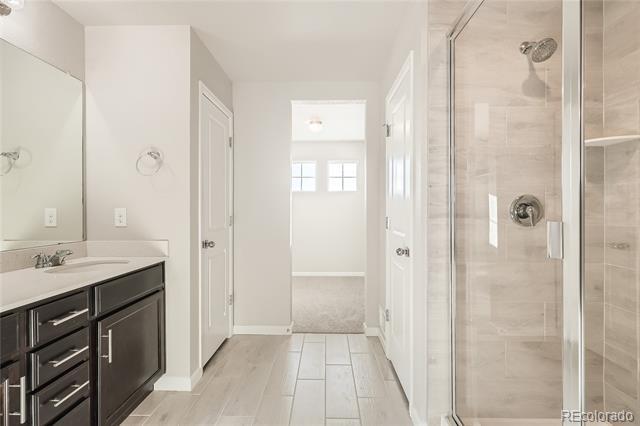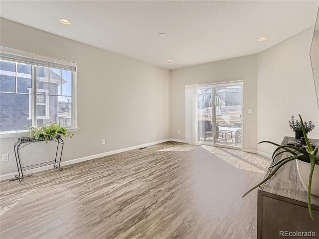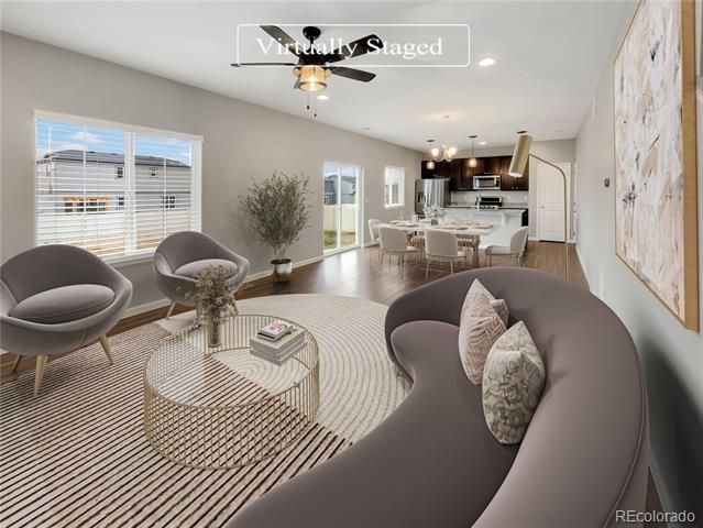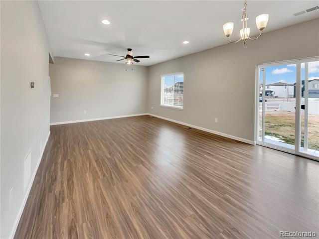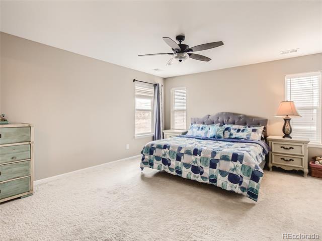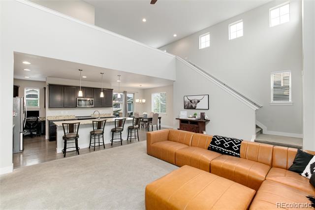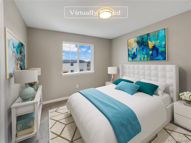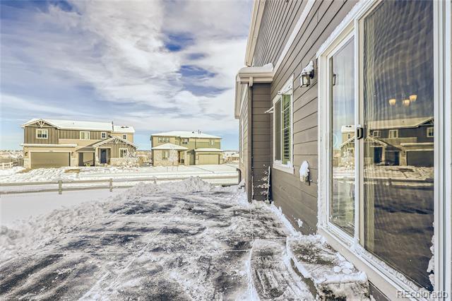 Don't wait for a new build and have to pay for all the upgrades, landscaping and window coverings on top of the price of the new home! This almost new home was built in 2020 & only lived in for 18 months! This beautiful, ready to move-in home is bright and airy built on a corner lot in the popular Anthology Community! Lots of natural light, popular open living and kitchen concept and oversized patio to enjoy the Colorado outdoor evenings. Main level has a spacious office with double glass doors and an additional bedroom and full bath, along with a very open kitchen/living area. The kitchen has a large, walk-in pantry, an island for entertaining and family cooking and plenty of cabinet space. Walk directly out to the backyard from the large slider off the kitchen to an oversized patio and fully fenced, landscaped yard. Upstairs you will find the primary bedroom and bathroom with a large walk-in closet, two additional bedrooms with a shared bathroom, a large loft and a spacious centrally located laundry room. Closets are large and abundant in this home! Custom window coverings throughout the home including plantation shutters on the main level. Basement is unfinished and a perfect layout (1,200 sf) for the next owner to potentially add 2 additional bedrooms, bathroom (stubbed in) and rec room. The pool, clubhouse, trails and playgrounds are a short walk from the home. Why wait for new construction when this home is like new, turn-key and ready for a quick move-in!