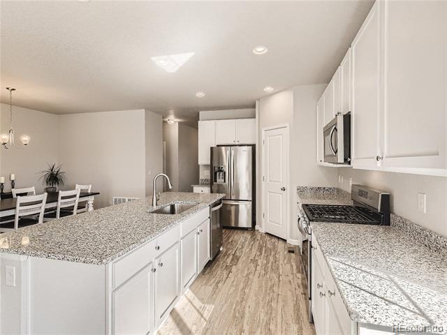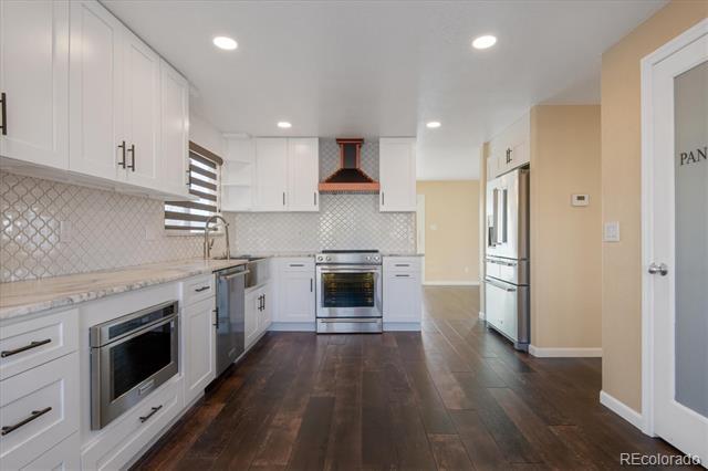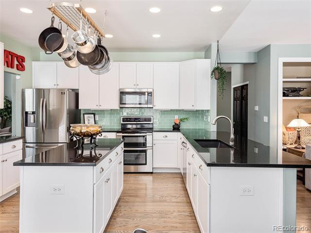 Pictures coming on Friday! Welcome home to this beautifully updated and move-in ready Stroh Ranch home in Parker. This unique layout offers 2 updated Primary Suites! Perfect for growing family or young professional looking to income hack their property. Gorgeous kitchen remodel in 2021 includes brand new cabinets, upgraded stainless steel Kitchen Aid appliances, granite leather countertops, tasteful and modern scallop backsplash, with eat in area by the bay window. This kitchen is perfect for entertaining with plenty of space to cook! Durable, waterproof, scratch resistant vinyl plank flooring throughout. Seller added upper level laundry room with upgraded window, french doors and storage area! Stunning crystal chandelier hanging in vaulted ceiling over the great room! Wow! You will love the oversized sliding door to your huge backyard deck with covered pergola. Beautifully landscaped front and backyard with perennial flowers and bushes that bloom. Enjoy the extended front door patio. Brand new A/C unit! Quiet neighbors great schools! Located just one block from the Cherry Creek river and trails system.