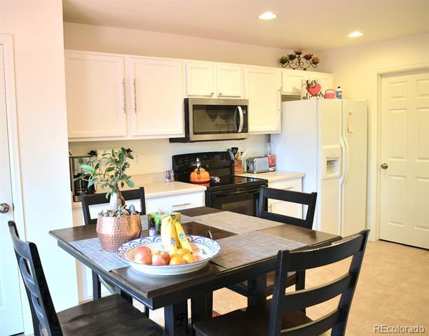 The living is easy in this well cared-for duplex home! Located in the desirable Trail Ridge neighborhood and at the end of a quiet culde-sac adjoining a greenbelt, this home features newer windows (2 yrs), newer roof (3yrs), newly painted kitchen and bath cabinets, newer stove, and large, built-in microwave (2 yrs). 3 bedrooms up, with a large primary suite, 2 additional bedrooms and full bath. There's a convenient half-bath powder room on the main floor. The kitchen is a good size with sliders to the deck, and there's a mainlevel laundry room with appliances included. Attached 2 car garage has built-in shelving. What a great location this is, with easy access to award-winning Cherry Creek Schools within walking distance, shopping and restaurants a few minutes away at Southlands, minutes to E-470 and DIA. Enjoy walking or biking on the area trails. Aurora Reservoir is nearby with a swim beach and year round activities. The yard has a private feel as it overlooks the greenbelt and is the perfect size for a garden area and easy maintenance. Enjoy entertaining on the deck this summer!