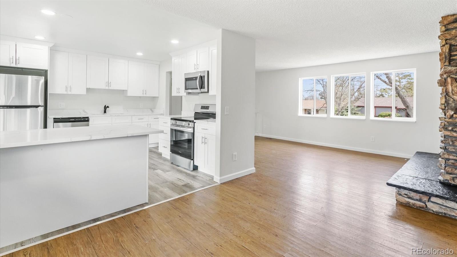 This beautifully renovated tri-level home sits in a peaceful neighborhood, offering a seamless fusion of contemporary elegance and timeless appeal. From the moment you enter, the well-thought-out floor plan flows effortlessly from one charming space to the next. A highlight of this property is the exquisite kitchen, a haven for any culinary enthusiast, featuring a large island perfect for informal dining and entertaining. The kitchen is further enhanced by gleaming quartz countertops and stainless steel appliances.