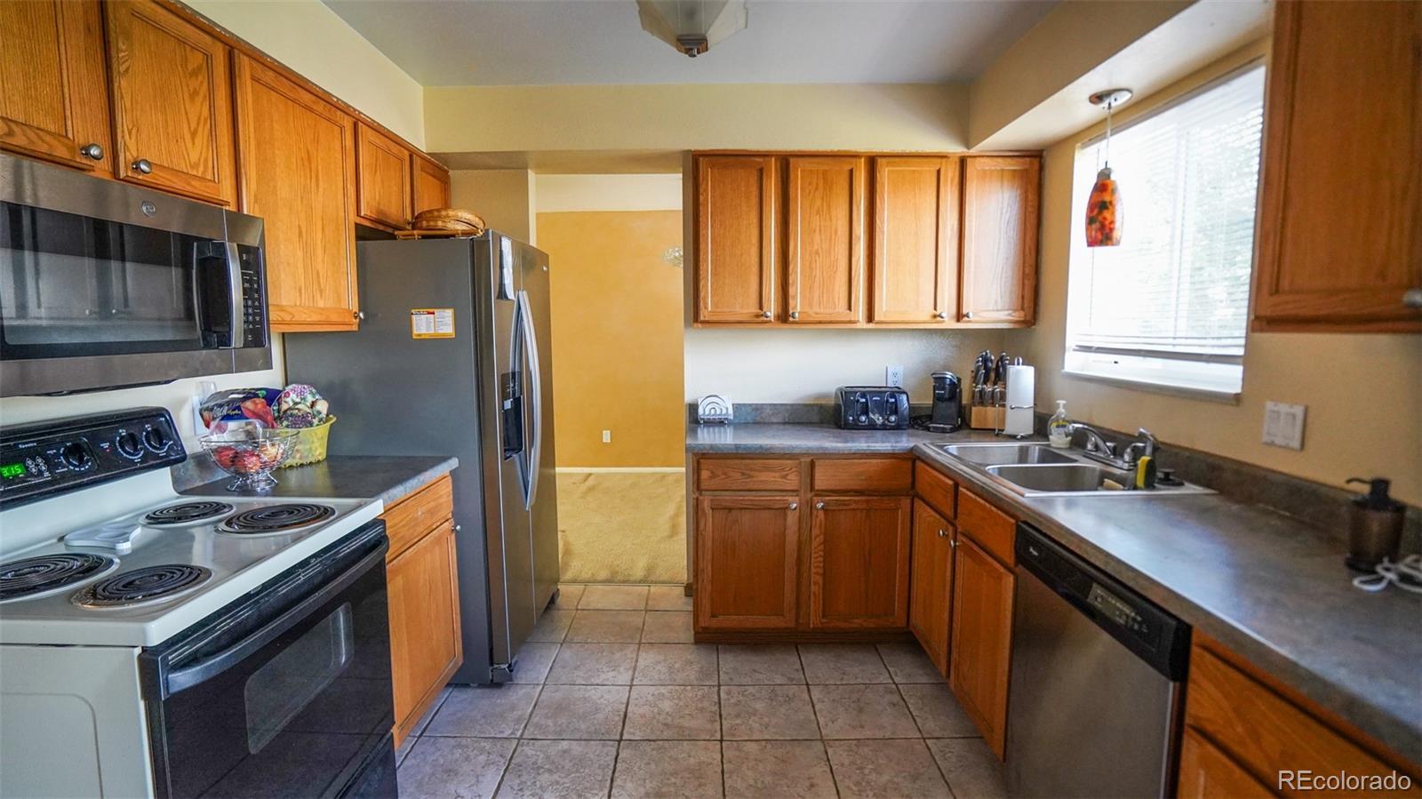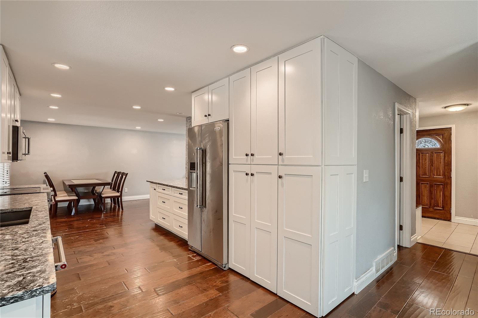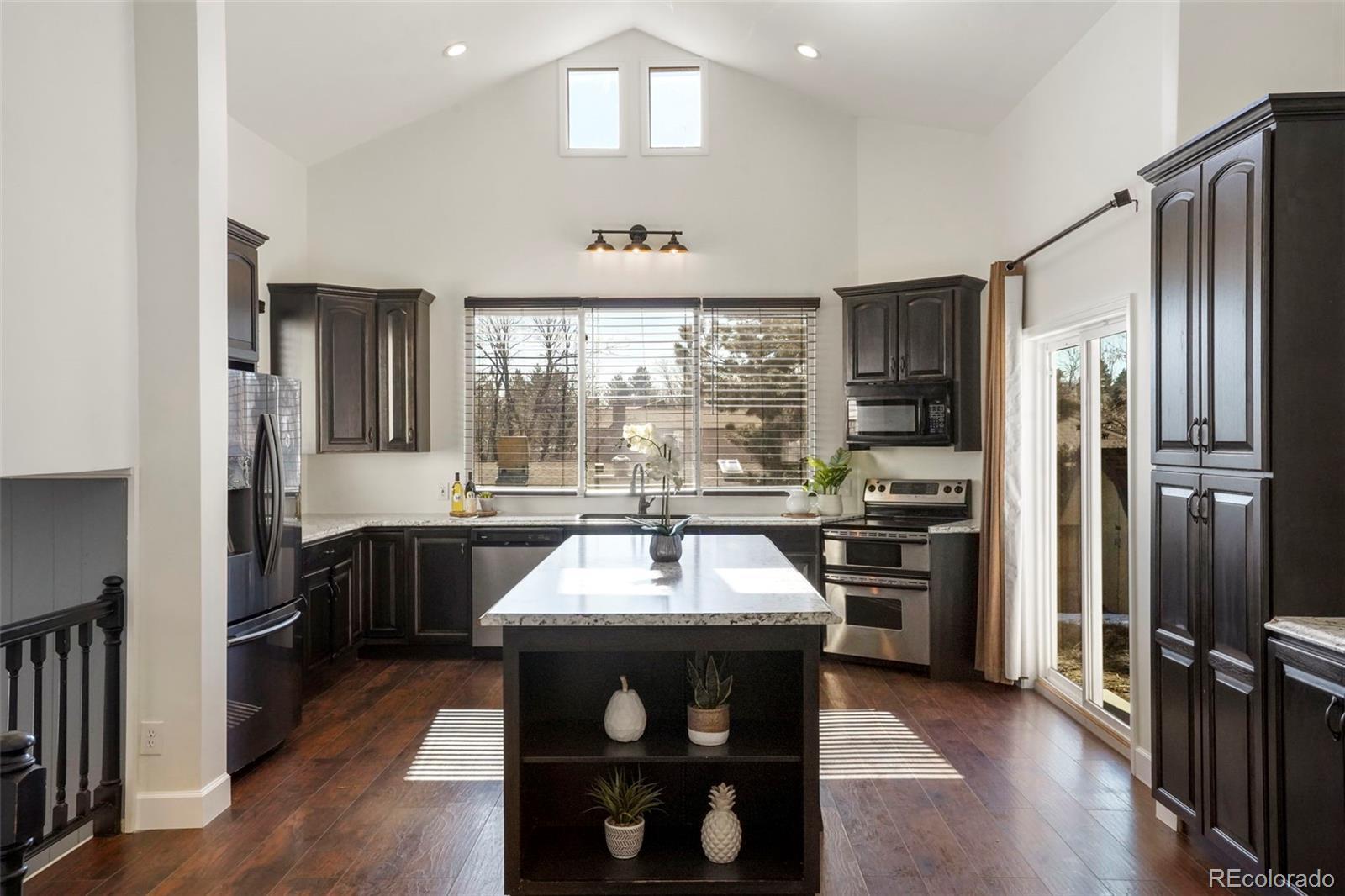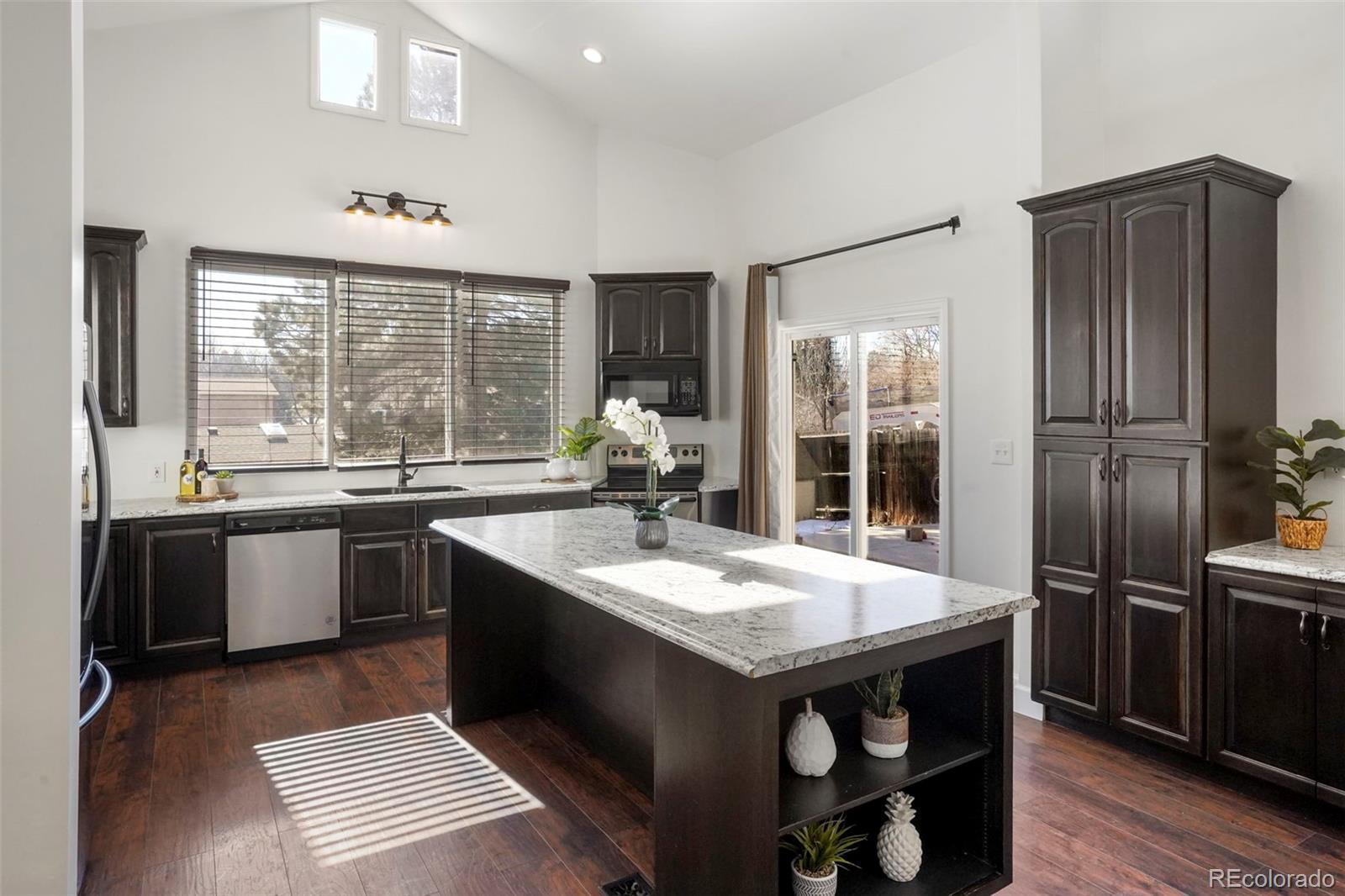 This home has what every Colorado home needs - great outdoor living space! Just off the kitchen is open access to a large covered deck that is ideal for entertaining or a cool drink on a warm summer night. The large private fenced back yard has plenty of room for kids to play and dogs to run. There's also a permanent fire pit for evening get togethers.