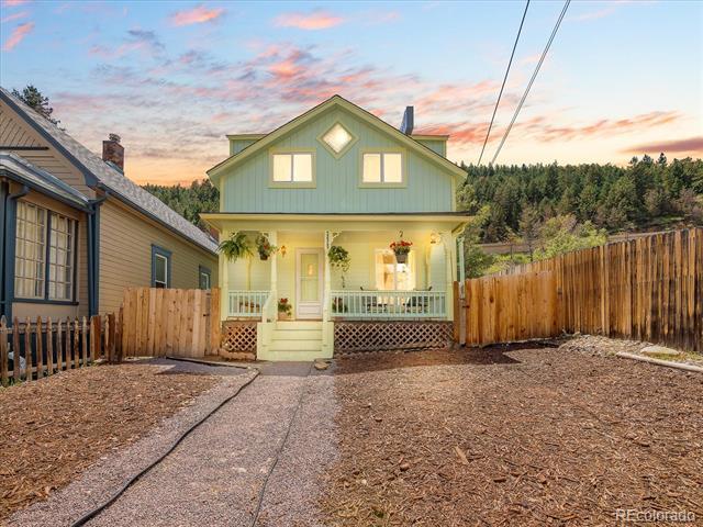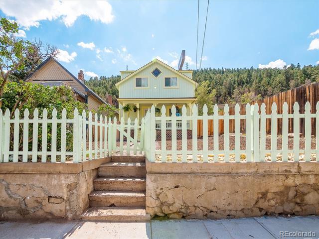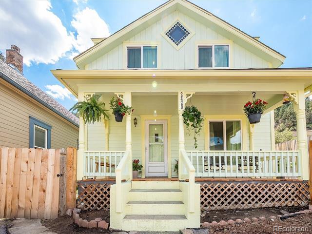 This quaint, historic beauty of a home is a RARE find. Impeccable shape. Brand new exterior paint and front porch. Enjoy a cup of coffee on the brand new porch as you watch the trees start to turn for fall. Head inside to find endless character and charm throughout this home. Colorado Sunshine floods each corner of the cozy living room equipped with a pellet stove. Spacious kitchen with newly painted cabinets and cabinet hardware. Kitchen also a bar top and eat-in kitchen. Bathroom on main floor along with laundry. Head upstairs to find 3 roomy bedrooms and 1 full bathroom. There is plenty of parking with the 2 car detached garage out back and reserved parking just out front! St. Marys Glacier, Mt. Blue Sky and Echo Mountain are so of the favorite spots for those in the area. Idaho Springs is a gem for those who live to ski and snowboard while maintaining a life in the Denver Metro area. You will never believe this but this home is only 30 minutes from Downtown Denver AND only 30 minutes to Loveland Ski Resort.