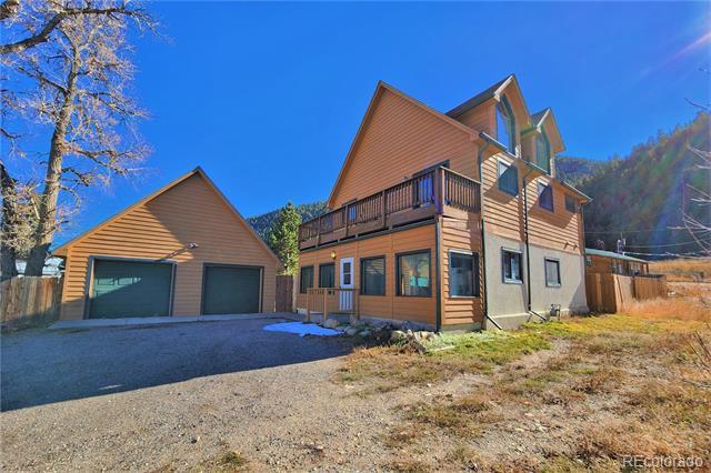 Great mountain home in the heart of historic Idaho Springs. This home has an open, airy feeling and has a great flow. It gets great sunlight and has a nice size yard for entertaining. It is on a quiet street but it is still walking distance to restaurants and shops. The kitchen is large and has a huge island for guests to gather around. It features wood cabinets, updated fixtures, black appliances and gleaming wood floors. The kitchen flows into the dining and living rooms for entertaining. Off the kitchen is a covered porch with a great area to eat and BBQ. There is a private fenced yard for kids and pets. Both bathrooms are large, have updated fixtures, nice flooring and tile. The upstairs has soaring vaulted ceilings, a large family room, plus big windows and skylights to let the light flow. There are French doors that lead to a private balcony overlooking the town and mountains. One of the upper bedrooms is a loft but there is plenty of room to add another bedroom. This would make a great corporate rental or a nice personal home. There are mountain views front and back and a nice front porch/mudroom for extra gear. Idaho Springs has many parks, biking trails and fun activities year round. This home is all about the Colorado lifestyle! Enjoy historic mountain towns, hiking, biking, skiing, rafting, fishing, local bistros, brew pubs, galleries, casinos, zip-lining, ATV & 4WD trails and much more all within a short drive. The huge garage will serve as basecamp for all your adventure gear. Just 25 min to the metro area, 35 minutes to skiing, 1hr. to the airport and within 1.5 hours of 7 world class ski areas.