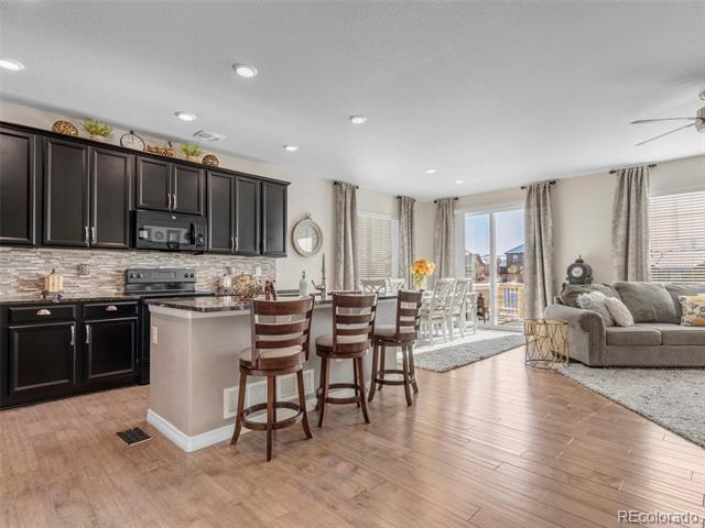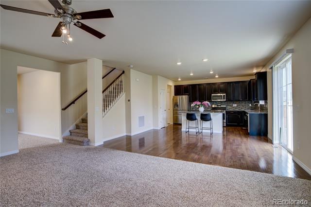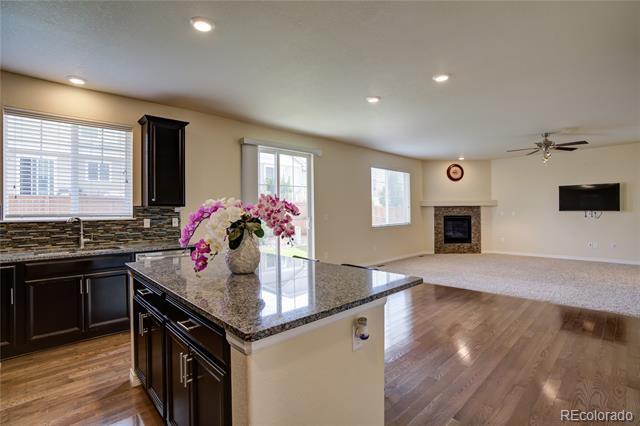 This beautiful Home is in the Desirable Conservatory Community on a large corner lot. The well-appointed kitchen includes 42 upper cabinets, oversized granite island, slab granite countertops, tile backsplash, pantry, and a large dining area. The spacious open floor plan boasts an oversized Colorado great room that opens to a spacious back yard. The relaxing master suite features a beautiful 5 piece master bath with granite countertop, and spacious master closet. The full unfinished basement provides tons of additional space for you to customize to fit your needs. The Conservatory Community features low HOA fees, a community pool & clubhouse, walking paths throughout the community, and is conveniently located near Southlands shopping & & dining, major highways, hiking & biking trails, and water recreation areas. This home is a must see.