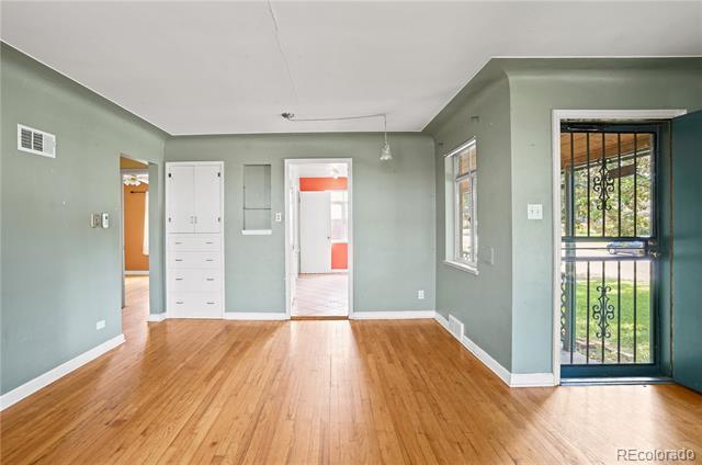 Opportunity unfolds within this quaint Mayfair brick ranch. A lush front yard escorts residents onto a covered front porch and further inside into a light-filled living area. Classic character surfaces throughout in the form of coved ceilings, hardwood floors and built-in storage. A galley-style kitchen showcases bright natural light, vintage cabinetry and a deep sink. More timeless flair unfurls in the main-floor bedroom, where a built-in vanity and dual closets offer additional storage space. The upper-level bathroom is surrounded by earthy tilework and grounded by a deep tub. Retreat to a lower level to find an assortment of flexible spaces and an additional bedroom. Outside, a sizable lot affords residents a verdant escape with mature trees, a lush lawn and a detached garage with a covered patio space. For owner-occupants, this home is an ideal base for creative refinement. Investors will relish in the expansive lot size perfect for the developer ready to expand their Denver footprint. Property is being sold AS-IS.