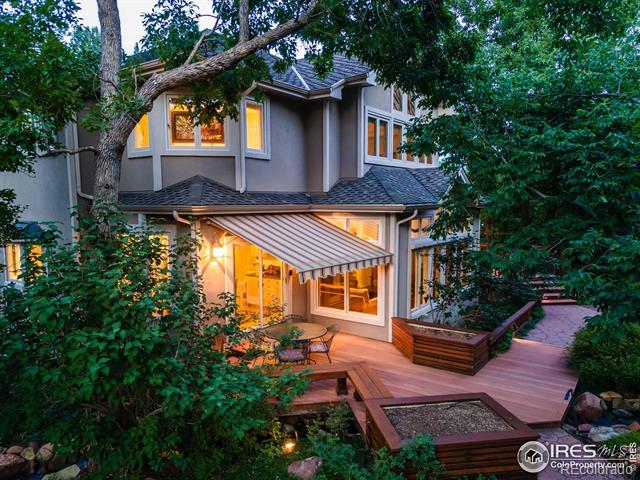 Fantastic Wonderland Hills gem. Enjoy the Boulder lifestyle in this updated & bright home on lovely, treed lot, in a prime location so close to Wonderland Lake trails, the foothills, and north Boulder shops & dining. Beautiful great room w/ hardwood floor & gas fireplace. Wonderful solid cherry kit, large gathering island, Jenn-Aire range oven, & 2018 Bosch dishwasher. Beautiful primary suite 2017 remodel w/birchwood floor, huge walk-in closet & barndoor to BA w/oversized, European glass shower. Delightful sunroom currently used as office. 2020 New central A/C w/humidifier, 2017 New roof, 2016 New Lennar furnace, 2016 new water heater. Anderson windows & Velux skylights w/ remote control & autoclose weather sensors. Relax with your coffee on the deck or patio, and enjoy your own private oasis filled with Honeysuckle, Japanese Lilac, Roses, Norwegian Maple, Buckeye, Lilies, & Iris. Oversized 2-car garage. This is a stellar location w/direct access to trails just at the end of the cul-de