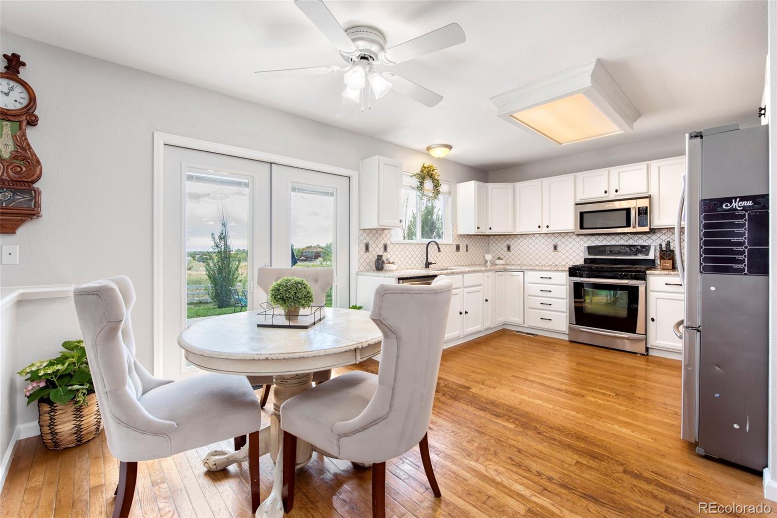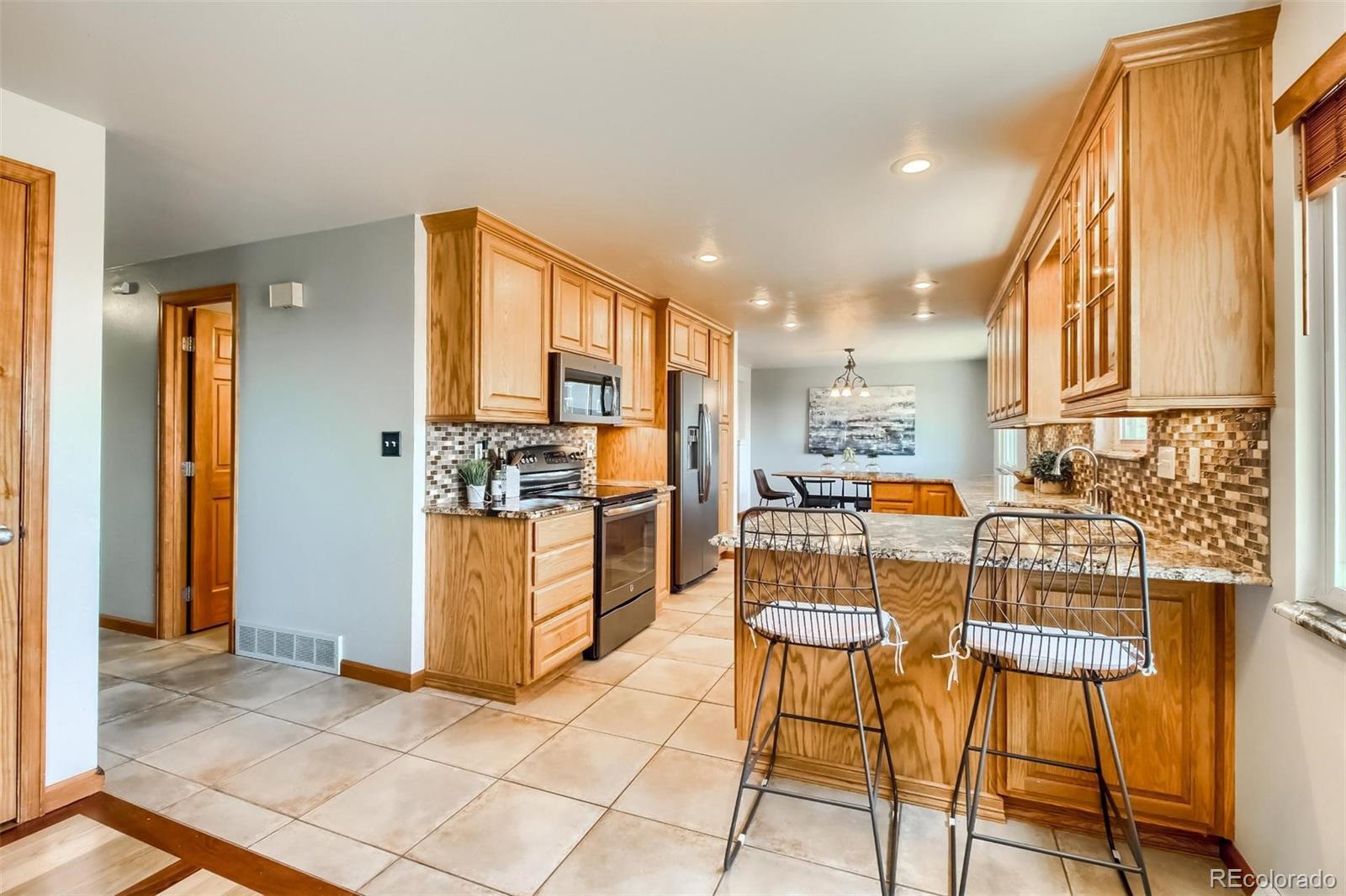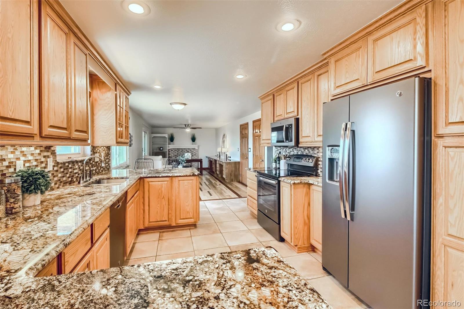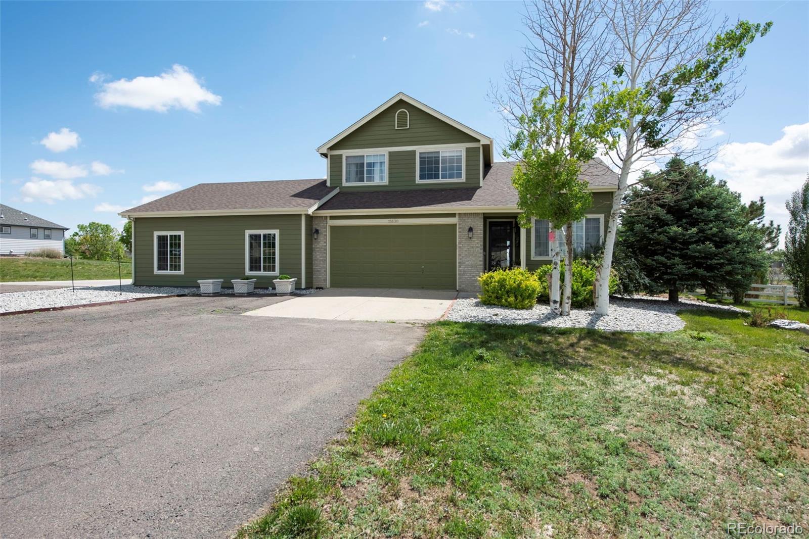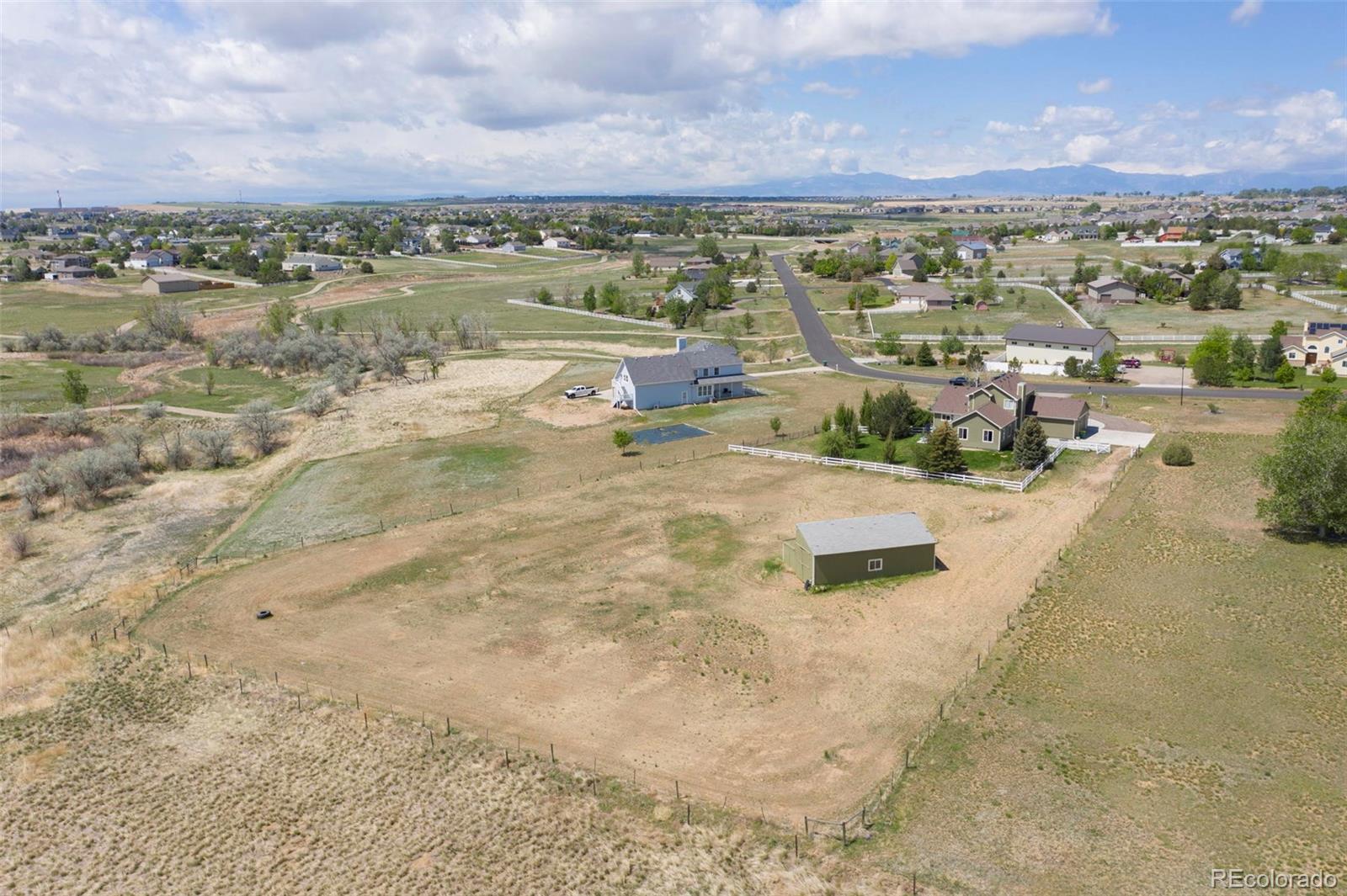 NEW PRICE! CHECK IT OUT! Enjoy Colorado on this half acre property with a more private, rural life just seven miles from the intersection of I-25 and Hwy 7. A-1 zoning and no HOA provide an opportunity for a little more freedom with your property. The home boasts a spacious floor plan with the perfect mix of rooms for comfortable living. The main level features an open living room and dining room area adjoining a country kitchen with granite counter tops, tons of cabinet and counter top space, under cabinet lighting and stainless steel appliances. Just off the kitchen is an additional family room with a wood burning fireplace, built shelving/built in desk area and custom wood floor finish featuring hickory, walnut, Brazilian cherry, white and red oak. Overlooking the backyard is an enclosed, well lit sunroom with doors to access the back yard and dog run/kennels with city and plains views of the airport and beyond. Upstairs, the master bedroom awaits with its own updated 3/4 bath and walk in closets. The upper level is rounded out with another 3/4 bath and 3 additional bedrooms - all good sized with large closest space, ceiling fans and their own great views! The home's living space expands downstairs to the newly remodeled, finished basement with family room and 2 additional conforming bedrooms. Completing the lower level is a full bath with oversized deep tub as well as the laundry/utility room. The property is ready for your finishing touches on the large, fully fenced yard with privacy and amazing views! Multiple fenced areas for animals - dogs, chickens, goats etc. Multiple storage sheds. Ample parking and storage areas.