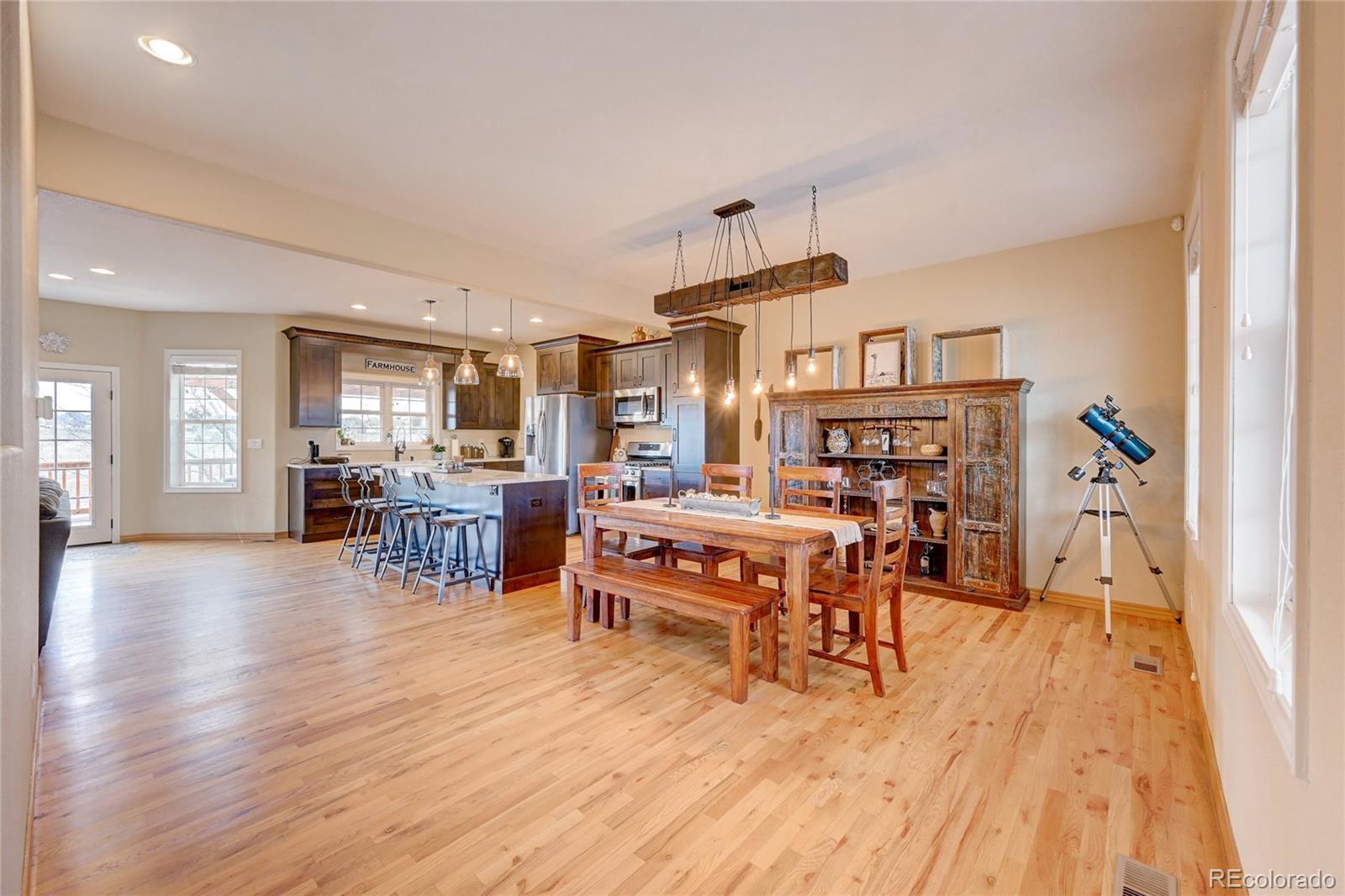 This beautiful 1.7-acre home is in the popular Todd Creek Farms neighborhood that is ready for its new owners. This home has a fully fenced-in backyard with two gates for easy access that includes a complete drive-around driveway for easy access. In addition, the home backs to open space with walking trails throughout the neighborhood. The large backyard deck is perfect for entertaining and includes a covered trellis. The flexible multi-purpose attached garage is a massive 1400 sq foot parkade with an insulated loft above that includes a lift and spiral staircase for easy storage access or even a kid's playroom. Beautiful hardwood floors are on the main and upper levels, with a beautiful newly remodeled kitchen that includes a farmhouse sink. The newly remodeled walk-in pantry with extra storage is perfect for a kitchen built for entertainment. The main floor bedroom has a beautiful modern bathroom design that is defined by its look, having plenty of space, and welcoming. The upstairs bedrooms have massive walk-in closets with a versatile bonus room that has lots of light for crafts or kids' playtime. Want more entertainment space? The newly finished walkout basement with a custom wet bar and walkout sliders to a secluded covered patio are just what you need. Come see why this home should be yours.