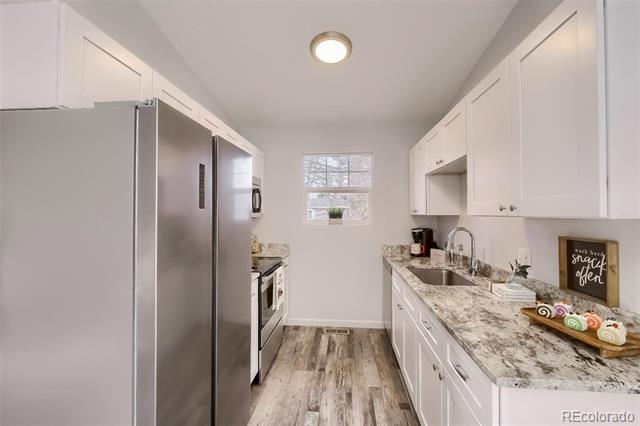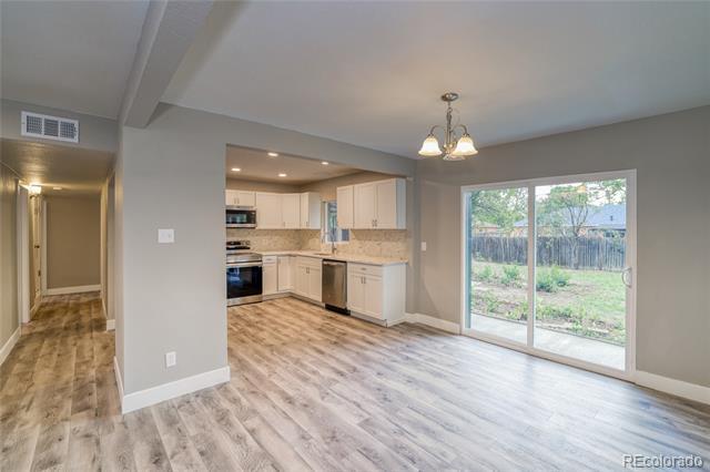 FHA approved. Move-in & be the ENVY of the neighborhood. This gorgeous tri-level home is ready for your personal touch. The home offers 3 bedrooms, 2 bathrooms & has been fully renovated. Boasting a new roof, new carpet, new siding, new windows, new central A/C system (Too many to list). A low maintenance front yard features artificial turf making your lawn green year round with no extra time from you. On the main level, you will enjoy the gas fireplace in the living room during the chilly Colorado winter nights ahead. The kitchen has all new cabinets, stainless steel appliances & beautiful granite countertops. Right off the dining room is a new sliding glass door leading out to your spacious backyard. The lower level has 2 ample sized bedrooms & updated bathroom. On the upper level you will find the laundry room & the primary bedroom with en-suite & large walk-in closet. Buy yourself the best Christmas gift ever!!