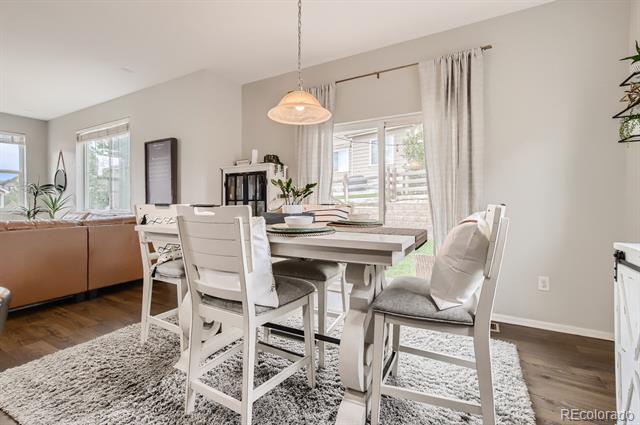 This beautiful home located in the desirable Copperfield Community is your next home. It is located on the biggest size corner lot in this safe and quiet neighborhood. This two-story home has a great open concept main floor floor plan and it has a basement that is waiting for your personal touches. The 9ft garage door accommodates large trucks and SUVs. There is a new driveway, garage floor, concrete walkway and concrete patio in the back. Close by Ponderosa Park offers food trucks and monthly movie nights in the summer and the club house hosts yoga every Saturday morning as well as access to the community pool. Schools are within 10-minute walking distance and there are multiple walking and biking trails throughout the neighborhood. Close to Southlands mall and Aurora reservoir make this the perfect location! This home wont last long!