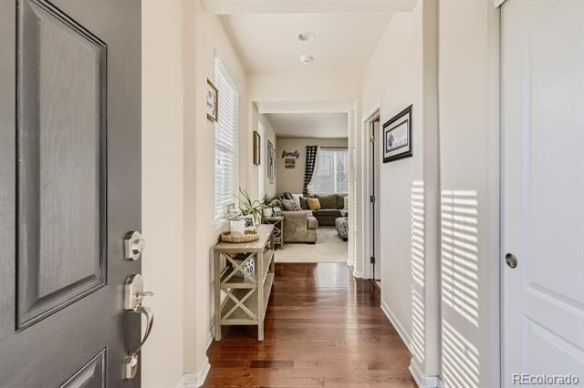 Corner Lot Location! 3 Bedroom, 3 Bathroom home located on a corner lot within the desirable Copperleaf Community! Extensive main floor hardwoods, bright interior and a casual open concept floor plan provide the backdrop for this homes comfort and livability! Inviting Entry/Foyer with soaring ceilings leads to the spacious Living Room featuring ceiling fan, pre-wire for surround sound and a cozy fireplace perfect for upcoming cooler weather. The heart of the home features a chefs Kitchen outfitted with pantry, island/ breakfast bar with seating, slab granite counters, newer appliances and Dining Area with access to the covered outdoor patio. 2-car oversized attached Garage provides ample room for storing all your toys! The upper-level living area features a loft/landing area with built-in study/home office workspace, Laundry with washer/dryer included, Full Bathroom plus 3 generously sized Bedrooms including a Primary Bedroom complete with ceiling fan, walk-in closet and en-suite 5-piece Bathroom featuring soaking tub and double vanity with granite counters. The unfinished Basement provides over 800 SF awaiting your finishing touch! This home showcases a private fenced yard with covered patio providing the perfect place for entertaining or casual outdoor living. Your family will enjoy the exclusive amenities of the Copperleaf community featuring pool, parks, playgrounds, annual events plus miles of walking/biking trails steps from your front door. Excellent location with convenient access to CO470, DIA, Southlands shopping and dining. Cherry Creek School District and a short 1 block walk to Eaglecrest High School! Dont miss the opportunity to be a part of this vibrant community!