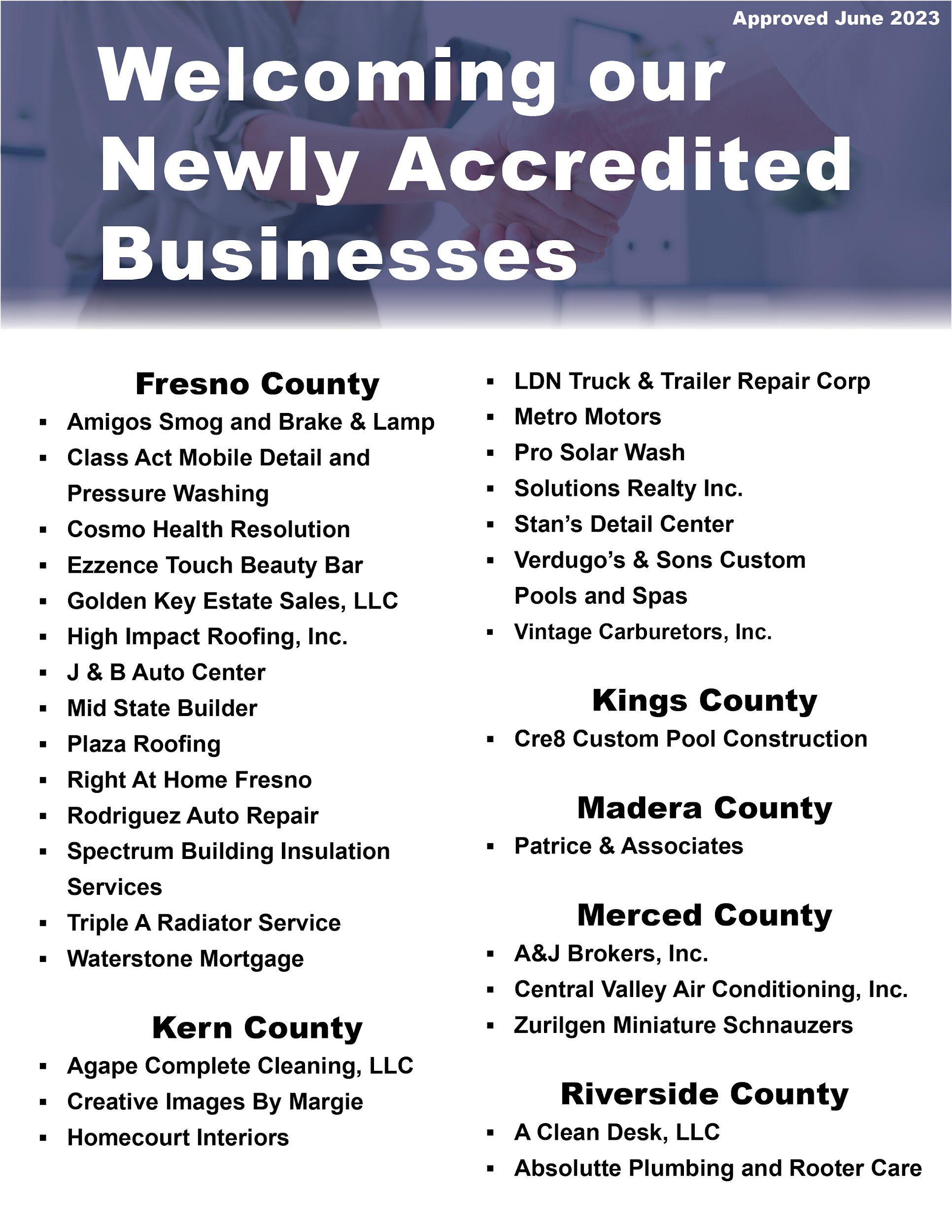 Review the monthly Board of Directors approval of 81 newly Accredited Businesses and 2 Revoked Accredited Businesses beginning on page 9.