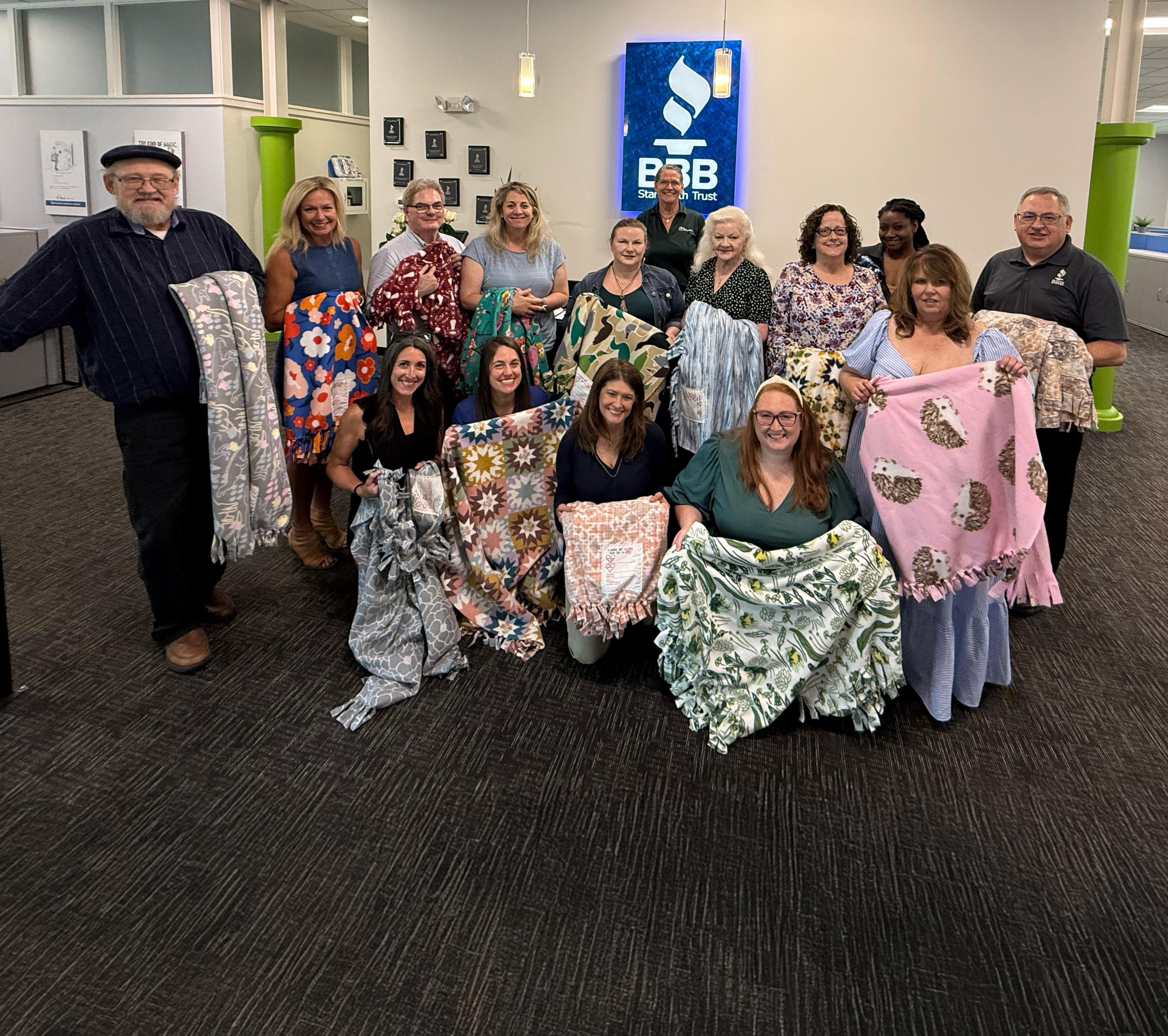 BBB team members enthusiastically reinvested by made blankets to donate to the foster system through an Accredited Charity, My Very Own Blanket. BBB also acted as a community collection site for the Small Biz Cares food and hygiene supply drive and kicked off the 2025 holiday season by volunteering at the Salvation Army holiday toy drive.