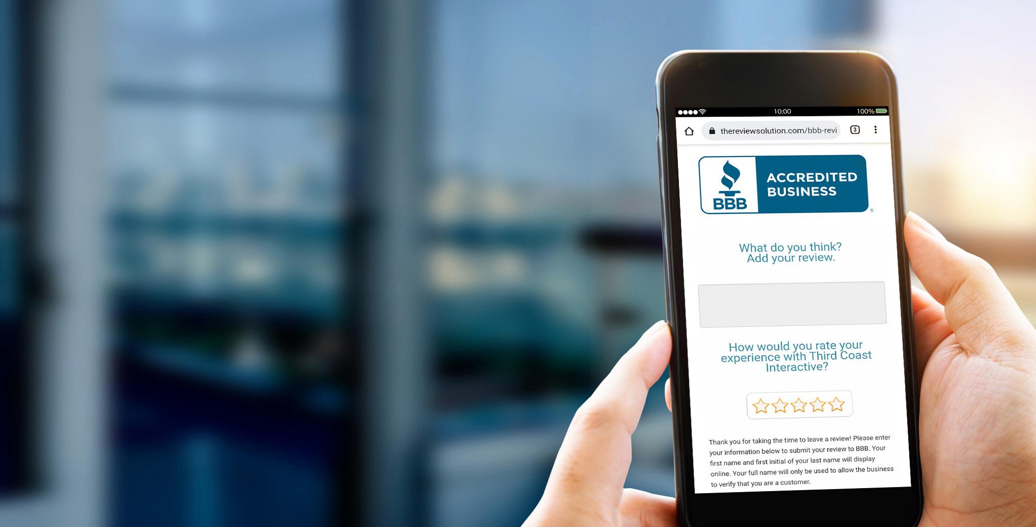 Como beneficio de la acreditación de BBB, ¡puede obtener Reseñas de Clientes de BBB en tres sencillos pasos!