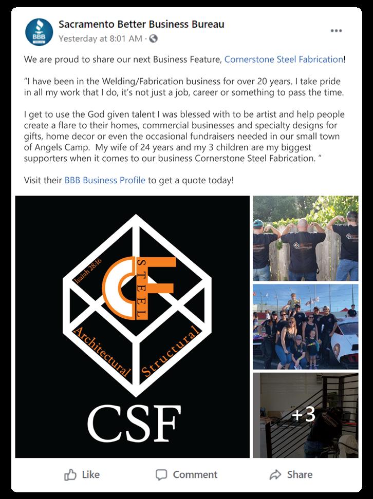 Consejo Comercial de BBBCreamos una publicación dedicada en las redes sociales todos los meses destacando todas las empresas acreditadas durante el mes anterior. Estas publicaciones obtienen tasas de participación significativas. Esta publicación ofrece exposición en línea inmediata para todas las nuevas empresas acreditadas.