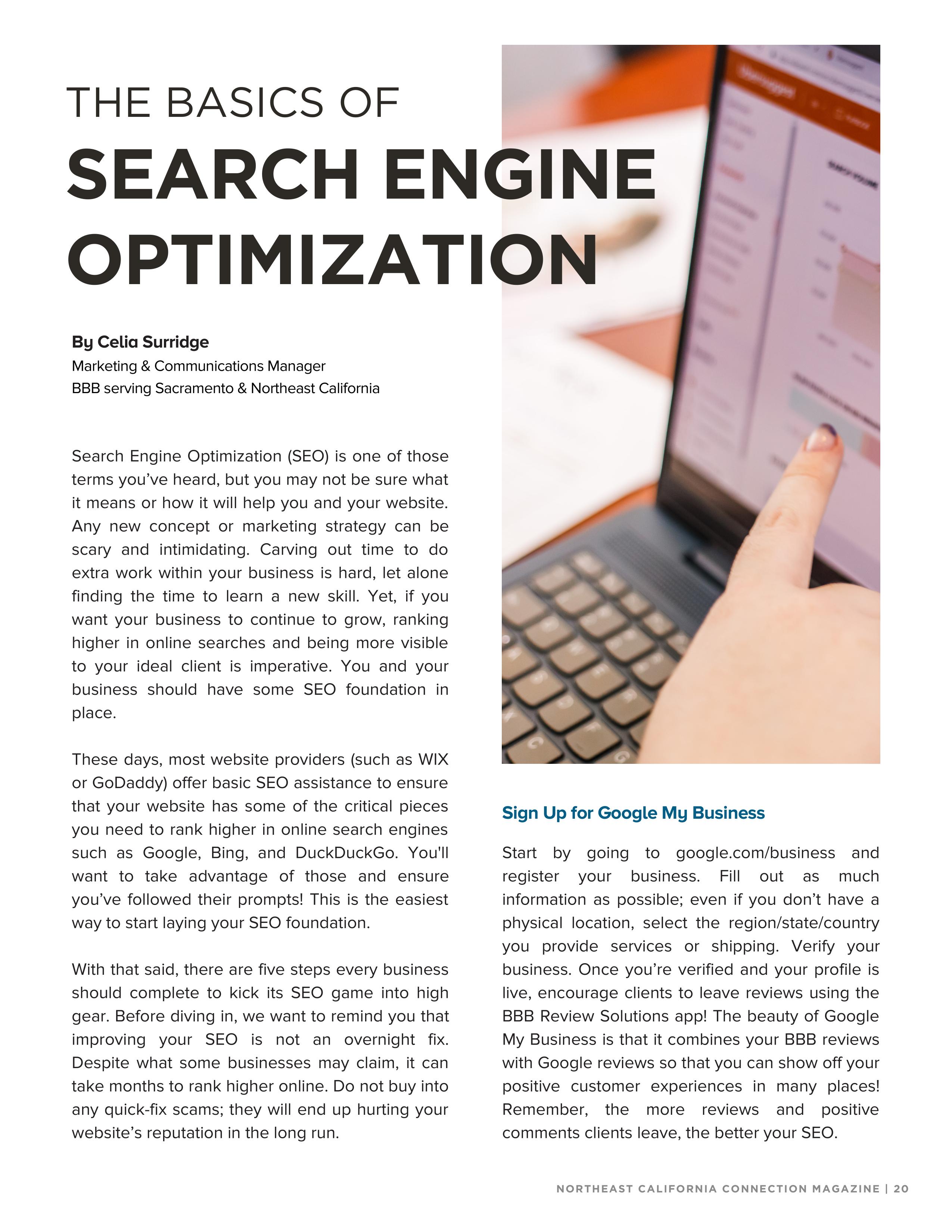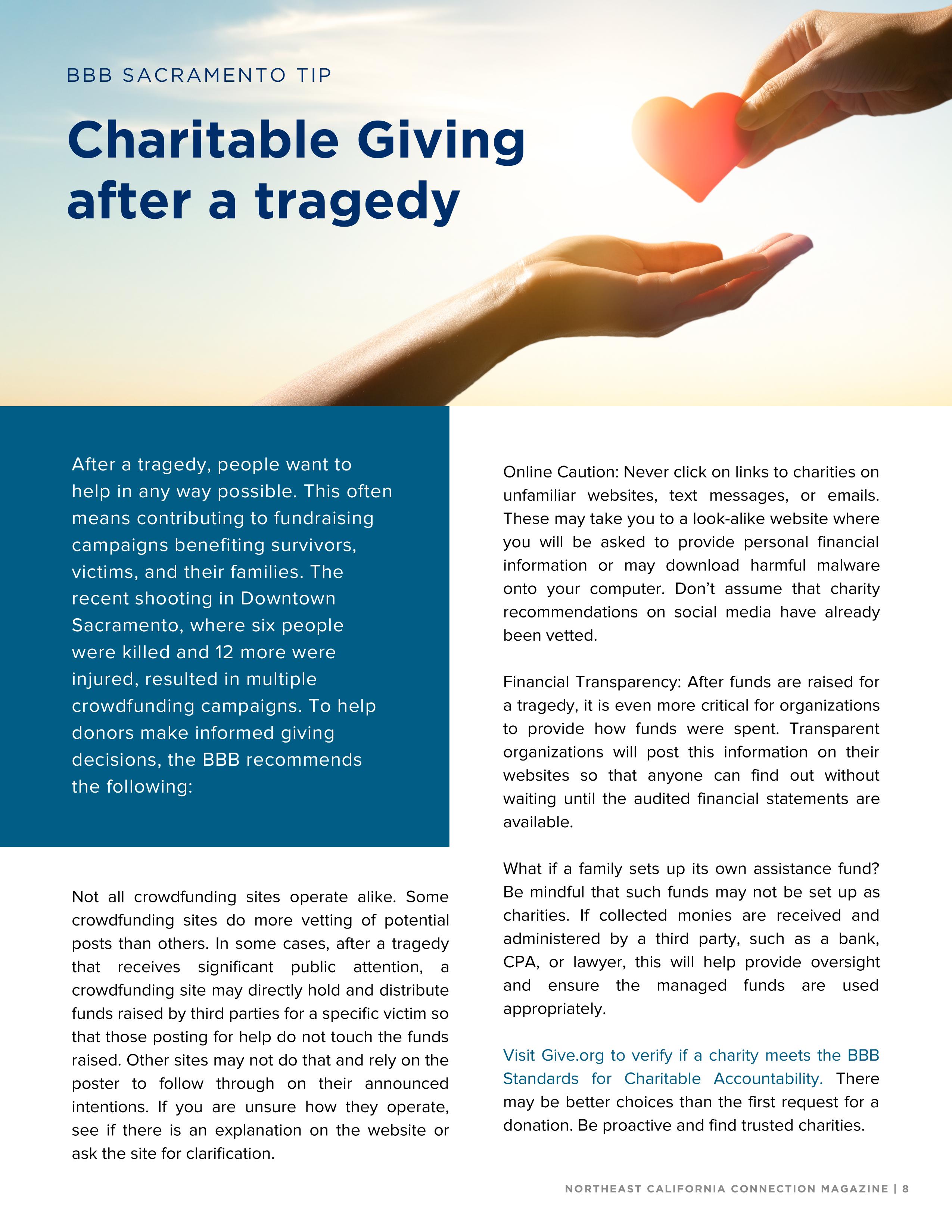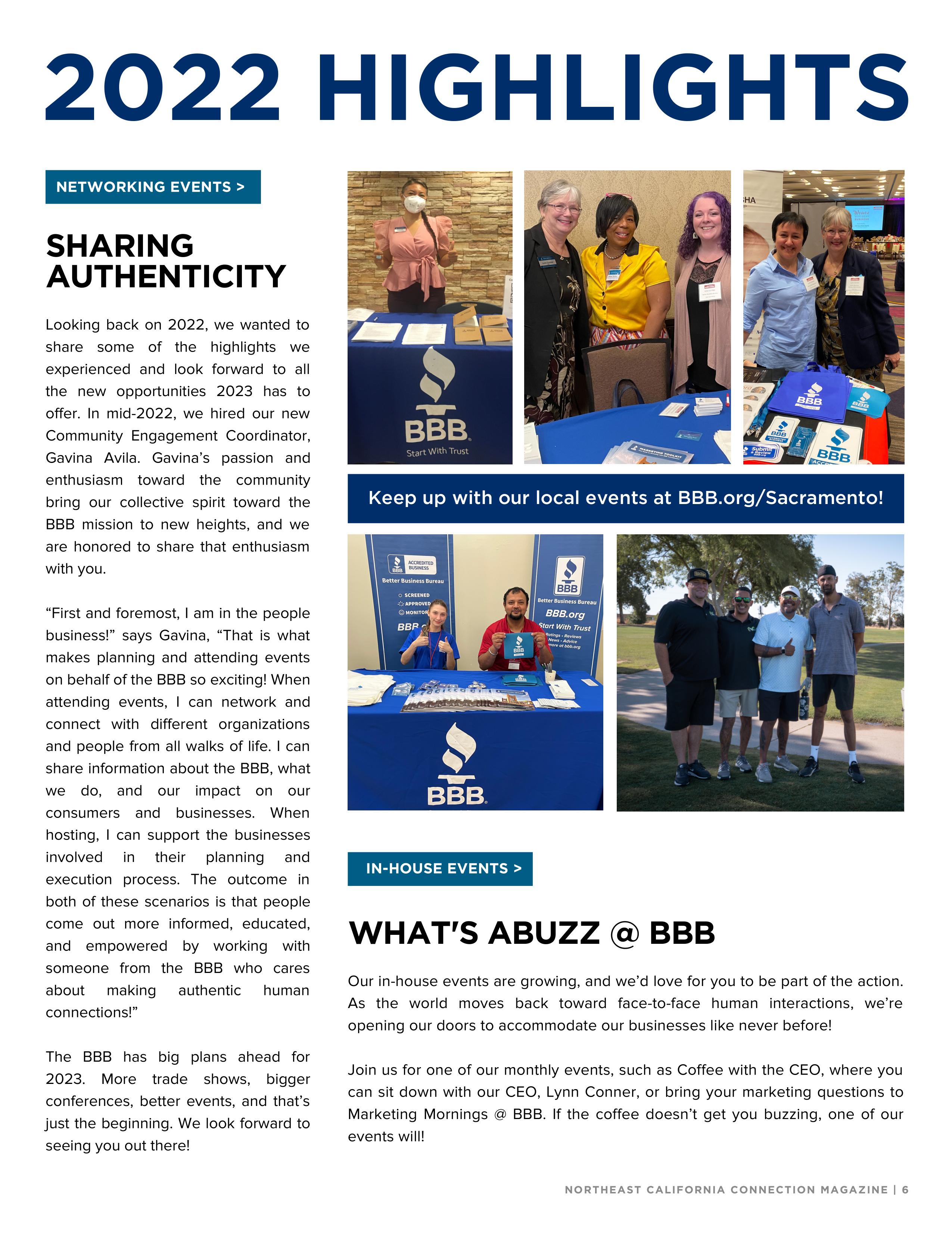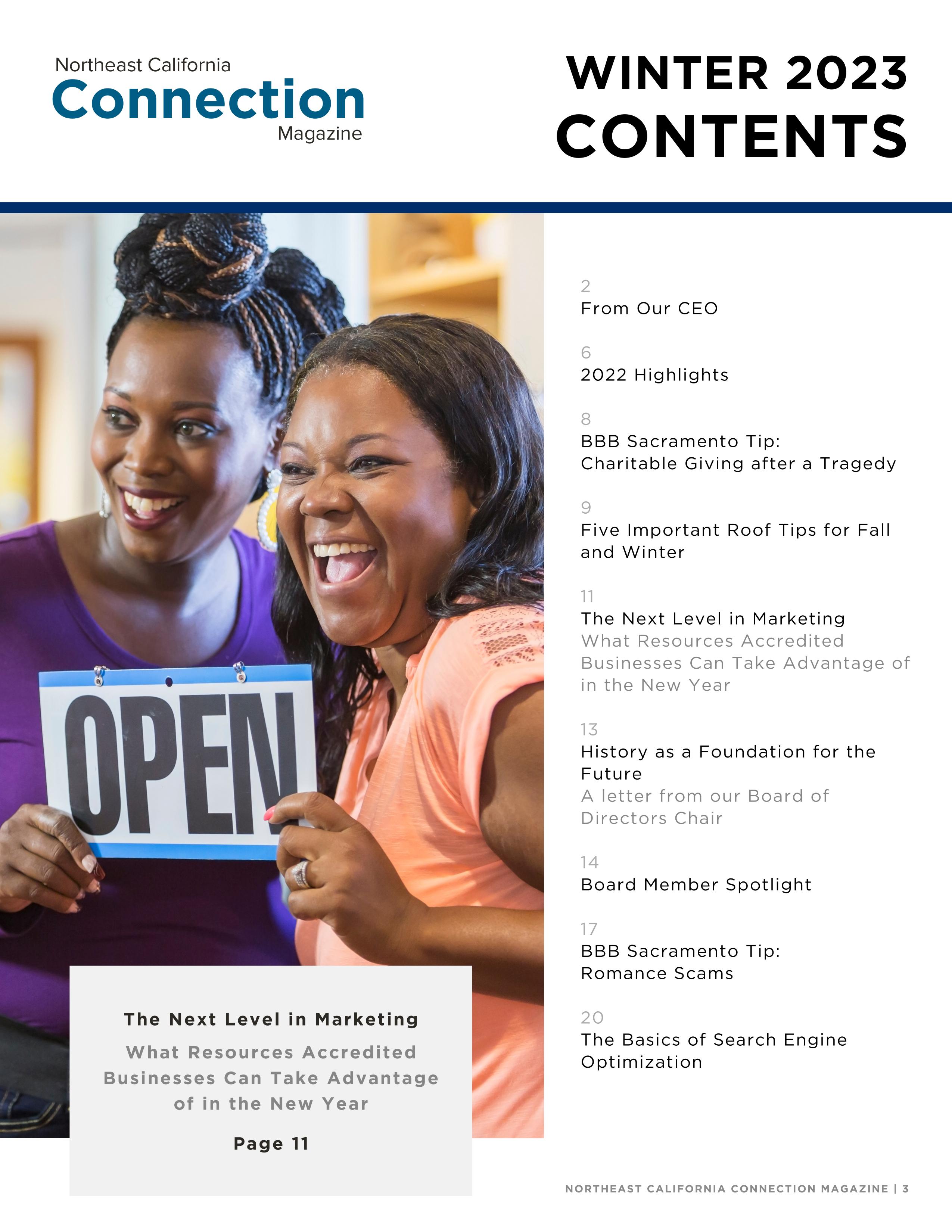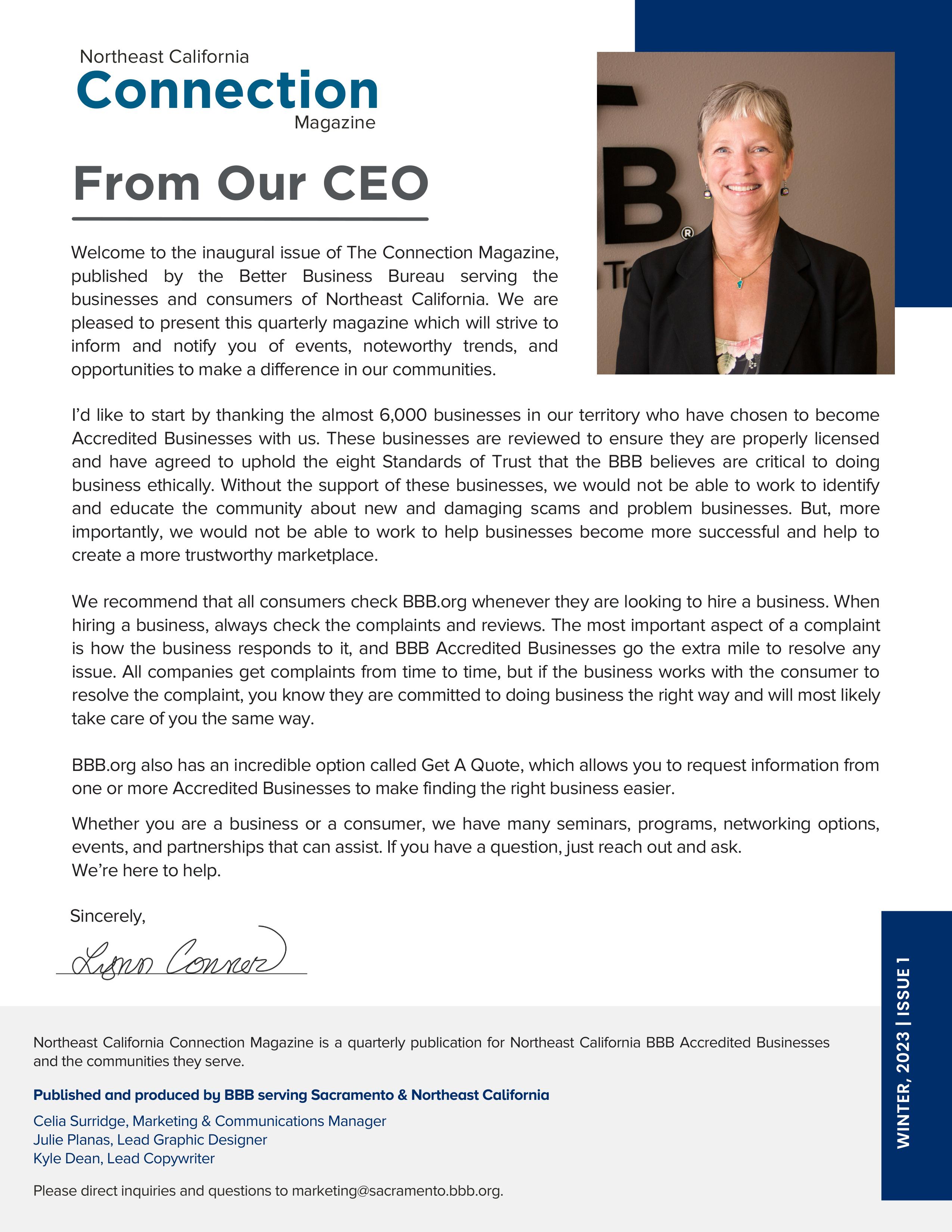 The Northeast California Connection Magazine is a quarterly publication for Northeast California BBB Accredited Businesses and the communities they serve.