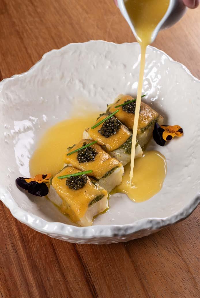 For mains, we had the spicy frankincense-infused coastal catch wraps. Grilled fish marinated with red chilies, fresh coconut and a herb salsa of mint, coriander, chilli and lime was wrapped in coconut leaves, delivering a true showstopper.