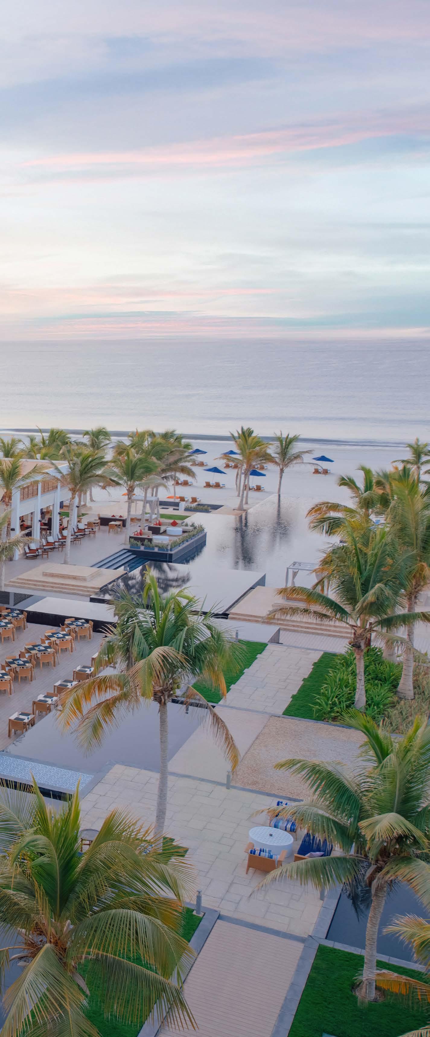 The spa is a calm counterpoint to the buzz of the resort, with five treatment rooms, wet areas, a Thai massage room and nail spa. Treatments highlight local ingredients such as frankincense, coconuts and pomegranates, with experiences including the four-hand Frankincense Ritual, Coconut Indulgence, and Salalah’s first hammam. Couples can also enjoy side-by-side massages in candlelit privacy, while the rasul room lets guests apply mineral mud before relaxing in steam.
