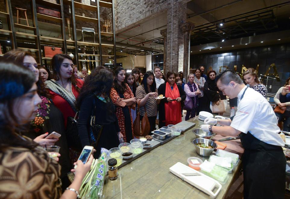 rucola, mint and basil, topped with crumbled local cheese and toasted Omani bread cubes, served with soft frankincense butter. A dressing station offered a zesty lemon-frankincense vinaigrette to finish.