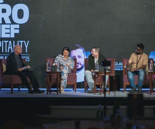 simultaneously monitoring and providing crucial data on waste levels. While acknowledging that guest interest in ethical sourcing is varied, the panellists collectively affirmed the importance of working with farmers to support their growth and ensure operational compliance with environmental standards. Ilias highlighted that their decisions are intentionally weighted toward sustainability rather than financial outcomes alone. Tom provided a compelling case study - a direct sourcing partnership with an Australian farm that secures quality produce while dramatically reducing the environmental footprint by cutting air freight through fewer deliveries.