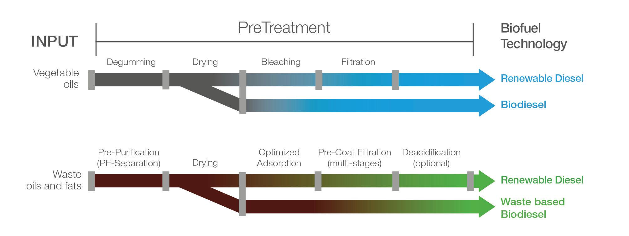 Crown technology delivers maximum contaminant removal to extend hydrotreater catalyst life. Get the cleanest possible feedstock delivered to your hydrotreater and achieve up to double catalyst life with Crown technology. Our rugged, robust RD Ready ™ Pretreatment System is guaranteed to meet product specs for all common contaminants and drastically improve plant uptime by reducing the need for catalyst changeovers. Backed by the construction of 50+ biodiesel plants, design of 10+renewable diesel pretreatment plants, and a propriety database of feedstock specs and results, Crown RD Ready ™ Pretreatment System protects your investment now, and in the future. Protect your hydrotreater and your Renewable Diesel operation with CPM and Crown. Edible Oils