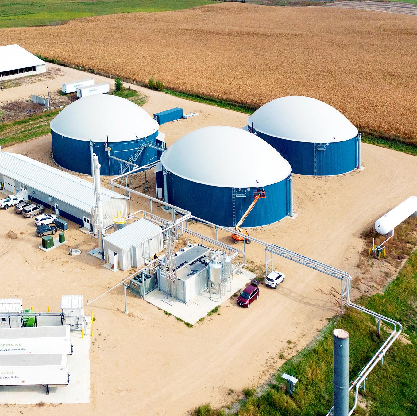 RNG is flowing at the Del Rio Dairy. Clean Energy broke ground on the biogas digester in November 2021, completed construction in February 2023, and stored the RNG produced until regulatory approval in June. Del Rio Dairy is the first low-carbon-intensity RNG project completed by the company.