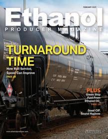 FEBRUARY 2023 www.ethanolproducer.com PLUS Green Ship Fuel From Ethanol CO2 PAGE 14 Good CIP, Sound Hygiene PAGE 34 PAGE 28 How Rail Service, Speed Can Improve TURNAROUND TIME