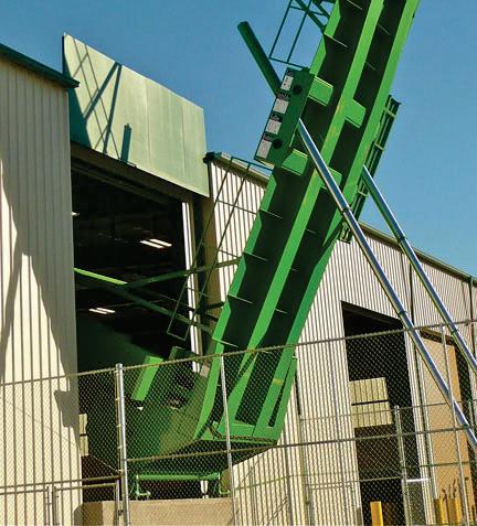 move the final product. One advantage, he points out, is the ability to forgo dust explosion vents that would be necessary with drag chains. Drag chains are entirely appropriate with the delivered chips, but the industry has moved away from them for pellets. Additionally, with belt conveyors, operators can avoid the pellet degradation issues inherent to drag chains moving finished product. “Ideally, after the cooler, you would use only belt conveyors,” Decker says.