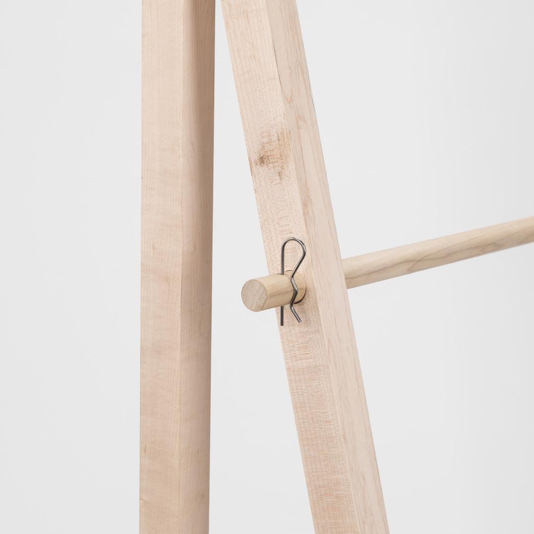 > Slide a Dowel Rod through the holes in each leg.