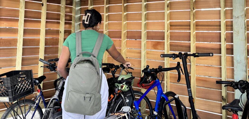 ek Bross, who’s the head of the facilities and operations team,” she said. “We went back and forth, and ultimately, the shed doesn’t have doors. Then, we got into the struggle of people needing a certain key or ID card to access it. It just felt easier to have three sides and a roof, so it is still protected, and it is more protected than the previous bike rack.”