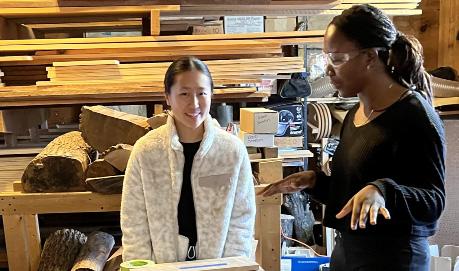 Julia Wang and Lauyanne Kouame (both ’26) continue with woodworking as seniors.