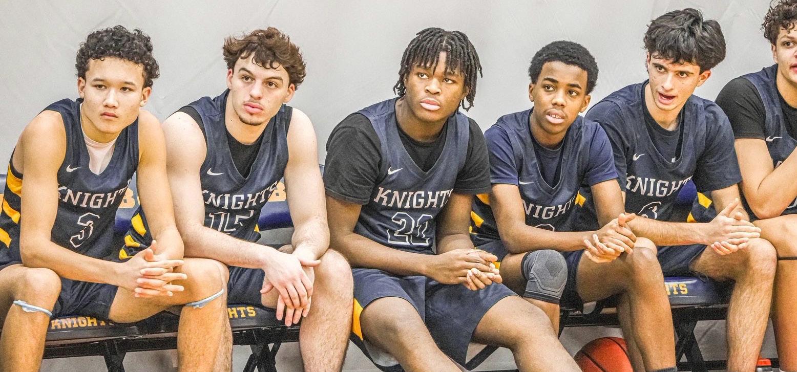 Boys’ Varsity Basketball players wait on the bench, ready to jump into the action. The team played Roxbury Latin on Jan. 23.