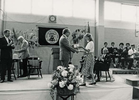 programs into BB&N that build character as well. These included in the school’s first year a required work program for students. Other related initiatives were the creation of a Student-Faculty Disciplinary Committee, which allowed students to participate on an equal footing with faculty in responding to serious disciplinary offenses; his Headmaster’s Course, required of all ninth graders; a Sexuality and Human Relationships course, which became a tenth-grade requirement; and a new graduation requirement that each student would complete at least 40 hours of service—a commitment that remains in place today. Serving others was part of the “kindness” of the school motto that Peter wrote: Honor, Scholarship, and Kindness.