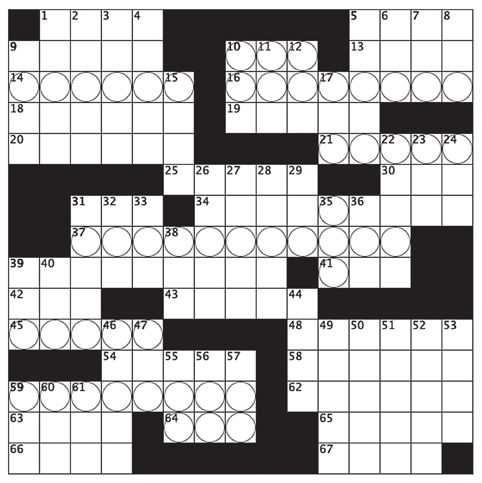 62. Where the circled answers on the grid have a di erent meaning, for short