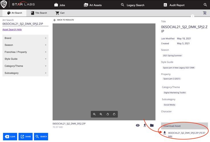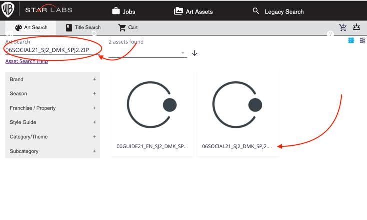 2. Paste this file name in the Art Asset Search function on Star Labs, which should bring you to the asset file. Click this. Some assets will not have thumbnails IF they are zip files.