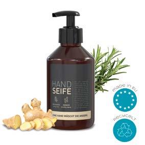 Erfrischend sauber. Die Seife hat einen Rosmarin-Ingwer Duft und ist vegan, pH-neutral, dermatologisch getestet und ohne Parabene. Der Spender ist aus recyceltem PET hergestellt, Inhalt 250 ml.