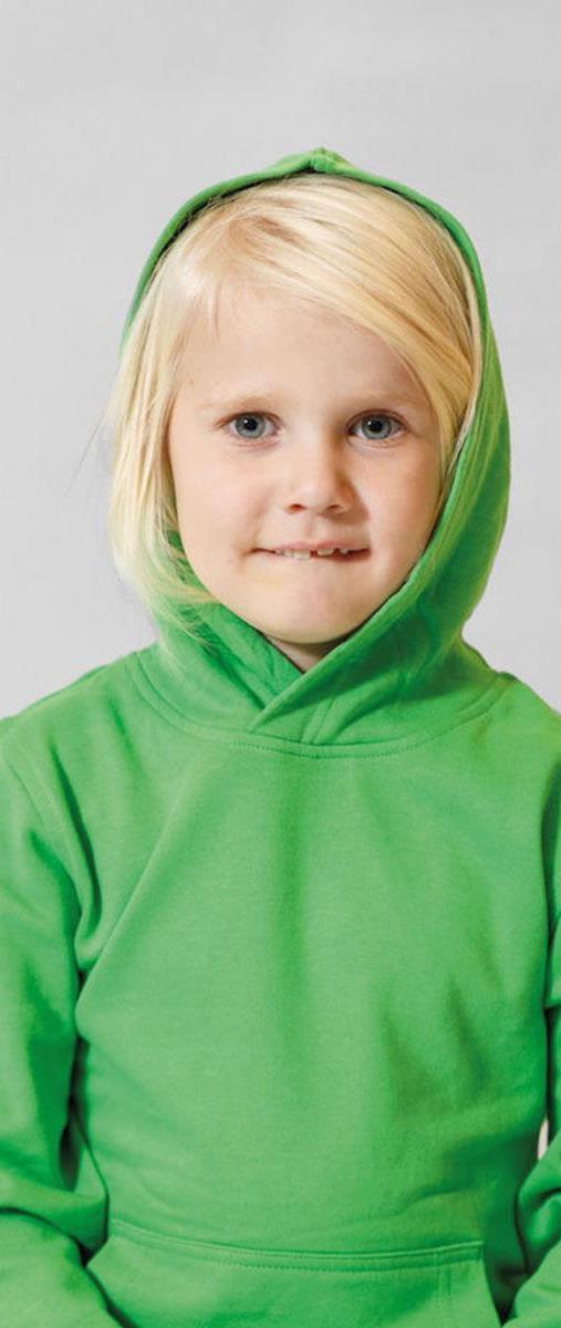 Der coole Kinder-Hoodie mit Kapuze und Fronttasche besteht zu 80% aus Bio-Baumwolle und 20% aus Recycling-Polyester.